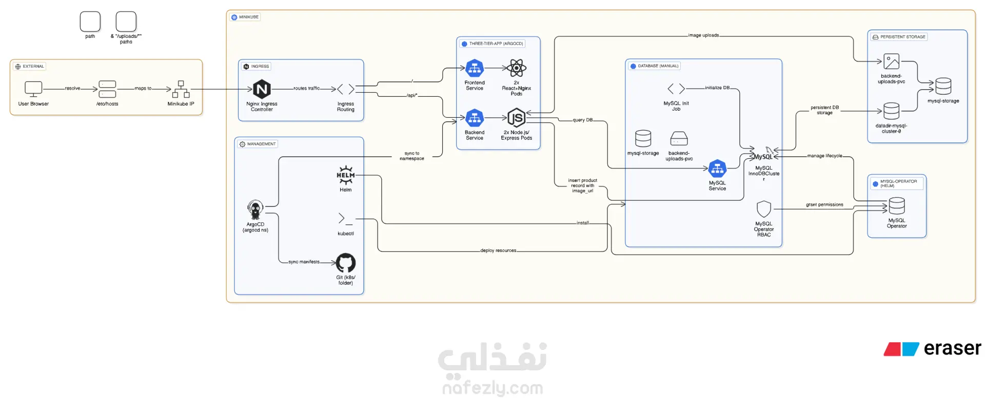 تطبيق تجارة إلكترونية بسيط يحتوي على واجهة أمامية React، وواجهة خلفية Node.js، وقاعدة بيانات MySQL، يتم نشره على Kubernetes باستخدام ArgoCD.