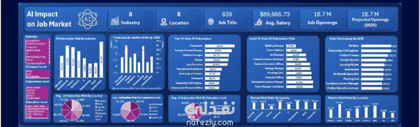 This project examines projected job market trends from 2024 to 2030, focusing on how AI is expected to increase or decrease employment across industries. Using Excel, I cleaned and visualized data on automation risk, AI adoption, salary, education, and experience to highlight where jobs are likely to grow, decline, or transform.
