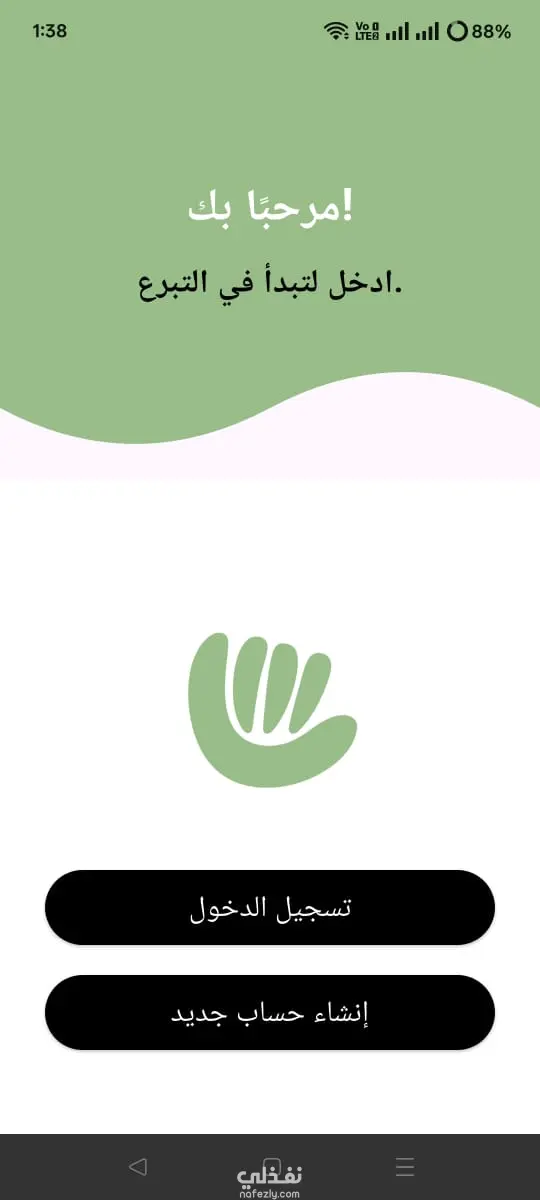 تسجيل الدخول/إنشاء حساب للمتبرعين والمستفيدين.