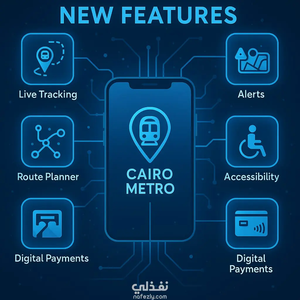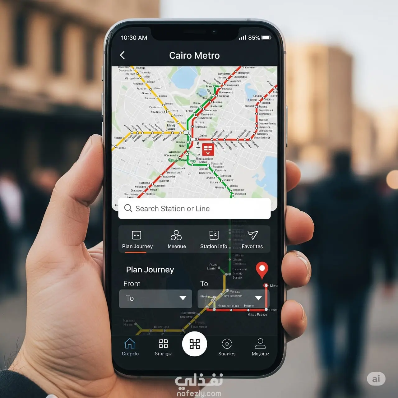 وصف تطبيق مترو القاهرة (Cairo Metro App): تطبيق موبايل تجريبي لمحاكاة خطوط مترو القاهرة الكبرى، تم تطويره باستخدام Flutter & Dart. يتيح للمستخدم إدخال محطة البداية والنهاية، ثم يعرض: عدد المحطات في الرحلة. الوقت المتوقع للوصول. اقتراحات التبديل بين الخطوط المختلفة. أكثر من مسار محتمل مع ترشيح الأفضل. التقنيات المستخدمة: Flutter & Dart لتطوير التطبيق. Firebase لحفظ البيانات. خوارزميات لحساب أقصر مسار بين المحطات. Material Design لواجهة مستخدم بسيطة وسهلة. ملاحظة: الصورة المعروضة تخيلية/توضيحية فقط لواجهة التطبيق، وليست صورة فعلية من النسخة الحالية. الهدف من المشروع هو محاكاة تجربة واقعية لركاب المترو وتسهيل التنقل بين المحطات.