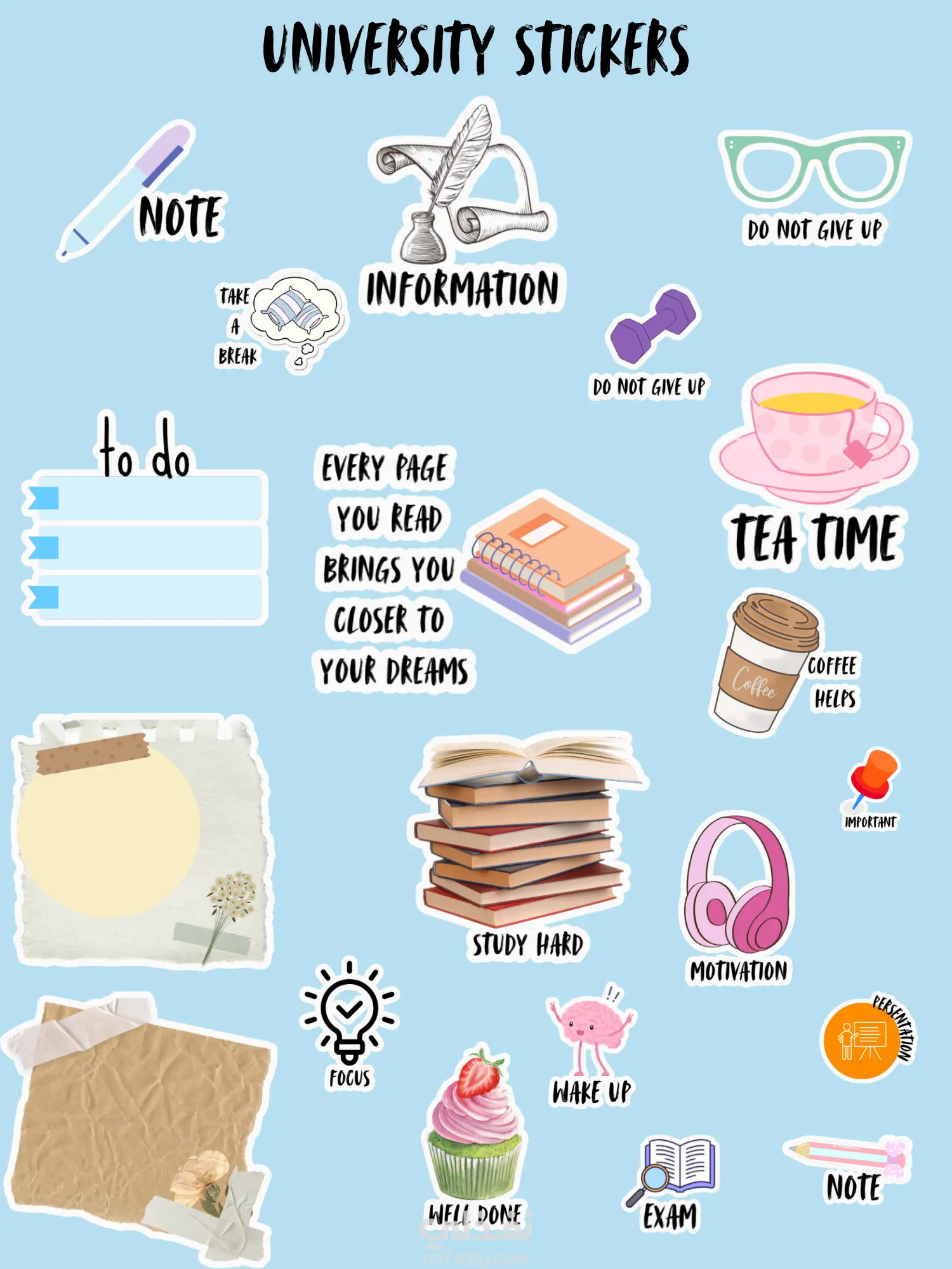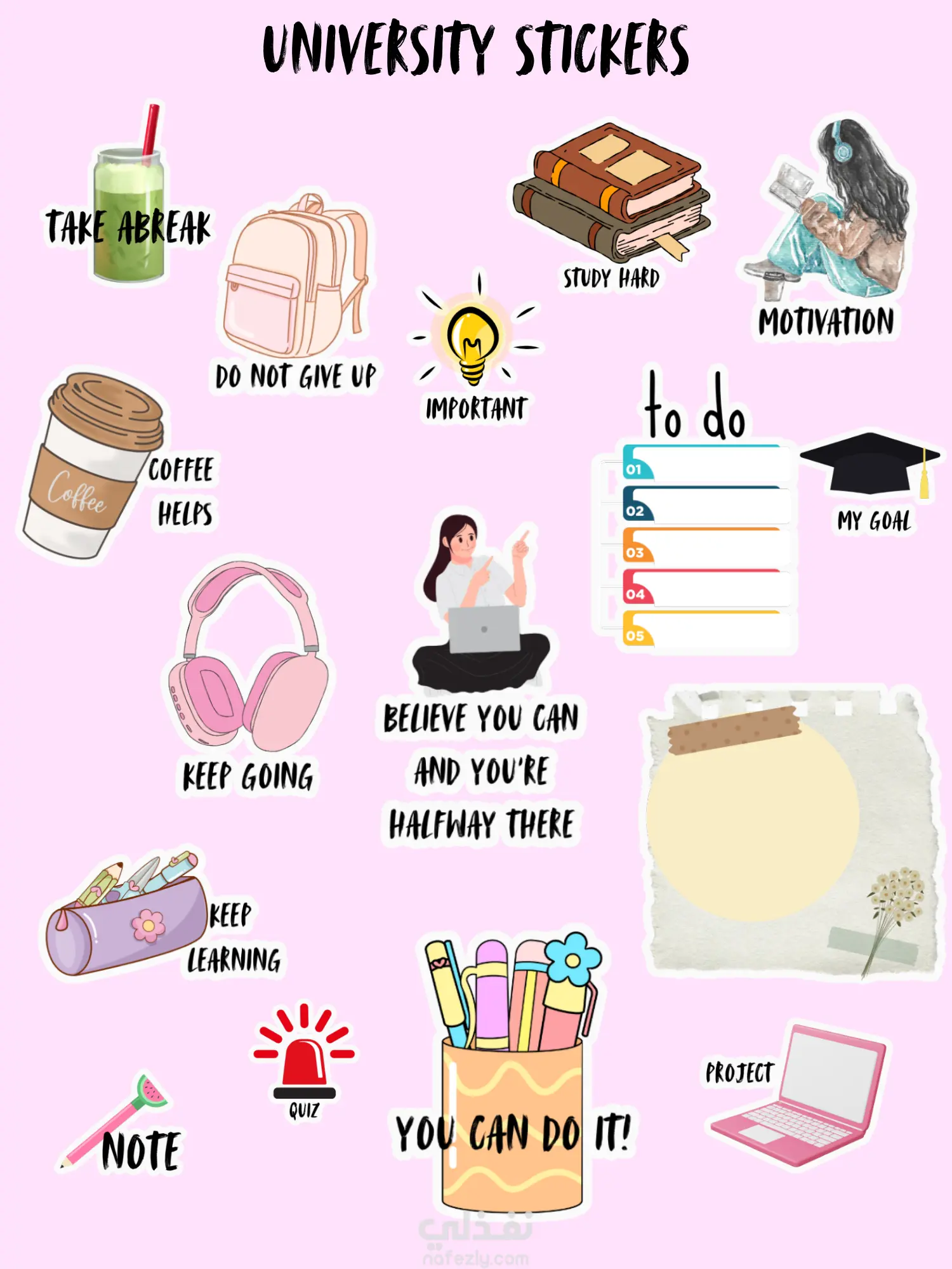 تم عمل مجموعة استيكراز للطلبة فى الجامعة لمساعدتهم على المذاكرة جزء للولاد وجزء للبنات تم العمل على برنامج كانفا برو
