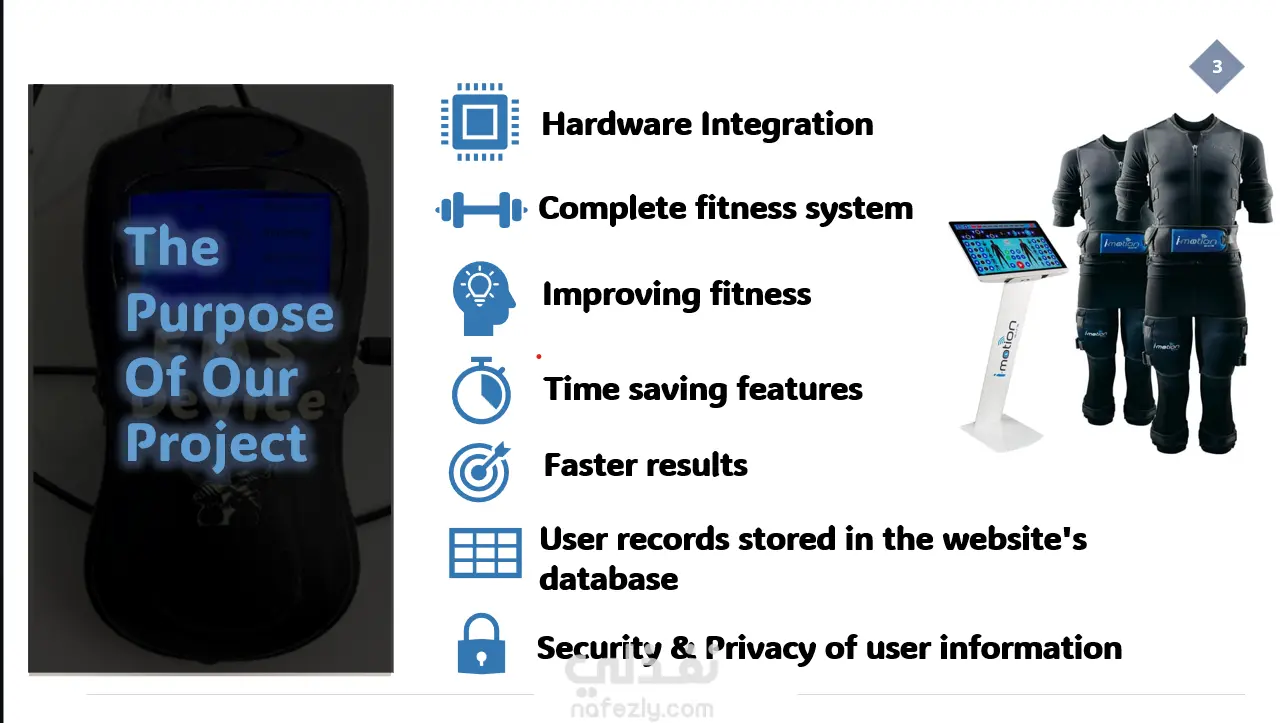 قمت بعمل بوربوينت مكون من 132 slide يحتوي علي كل تفاصيل مشروعي لإظهار محتويات ومكونات المشروع بالكامل بإحترافيه بإضافه animations و transitions لكل slide بحيث يقوم بجذب انتباه المشاهد لفهم جميع تفاصيل المشروع