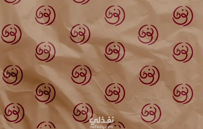 *نمط (Pattern): تصميم نمط متكرر من اللوجو على خلفية بنية مجعدة، يمكن استخدامه في التغليف أو المنتجات.