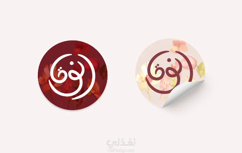*ملصقات (Stickers): تصاميم دائرية لملصقات مع اللوجو على خلفيات زهورية أو ملونة، مناسبة للمنتجات اليدوية مثل الهدايا والكتب.