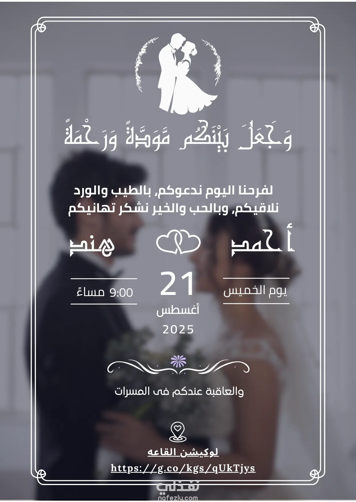 تصميم دعوة زفاف أنيقة باسم العروسين (أحمد & هند)