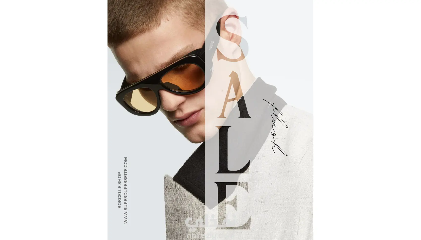 يعتمد التصميم على الأسلوب العصري البسيط (Minimal Style) مع توزيع احترافي للعناصر البصرية والنصية لشد الانتباه إلى الكلمة الرئيسية "SALE" دون إغفال إبراز المنتج نفسه.