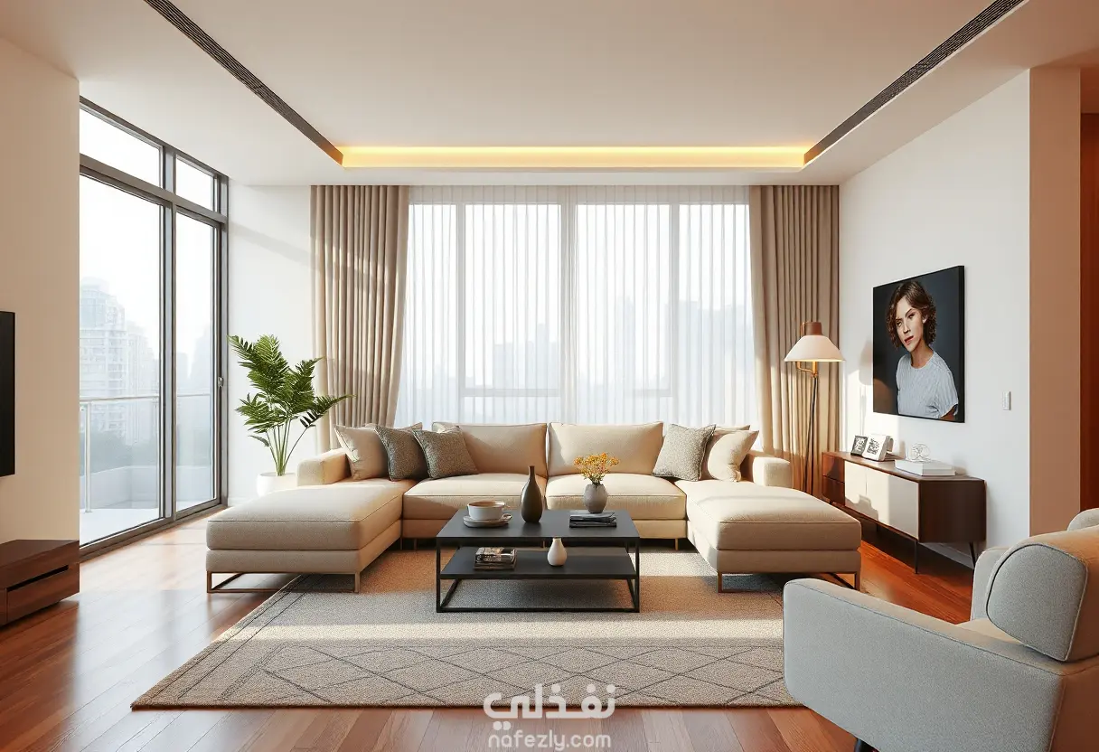 تصميم داخلي واقعي لشقة سكنية بمساحة 120 متر – ستايل كونتمبراري دافئ وأنيق.
