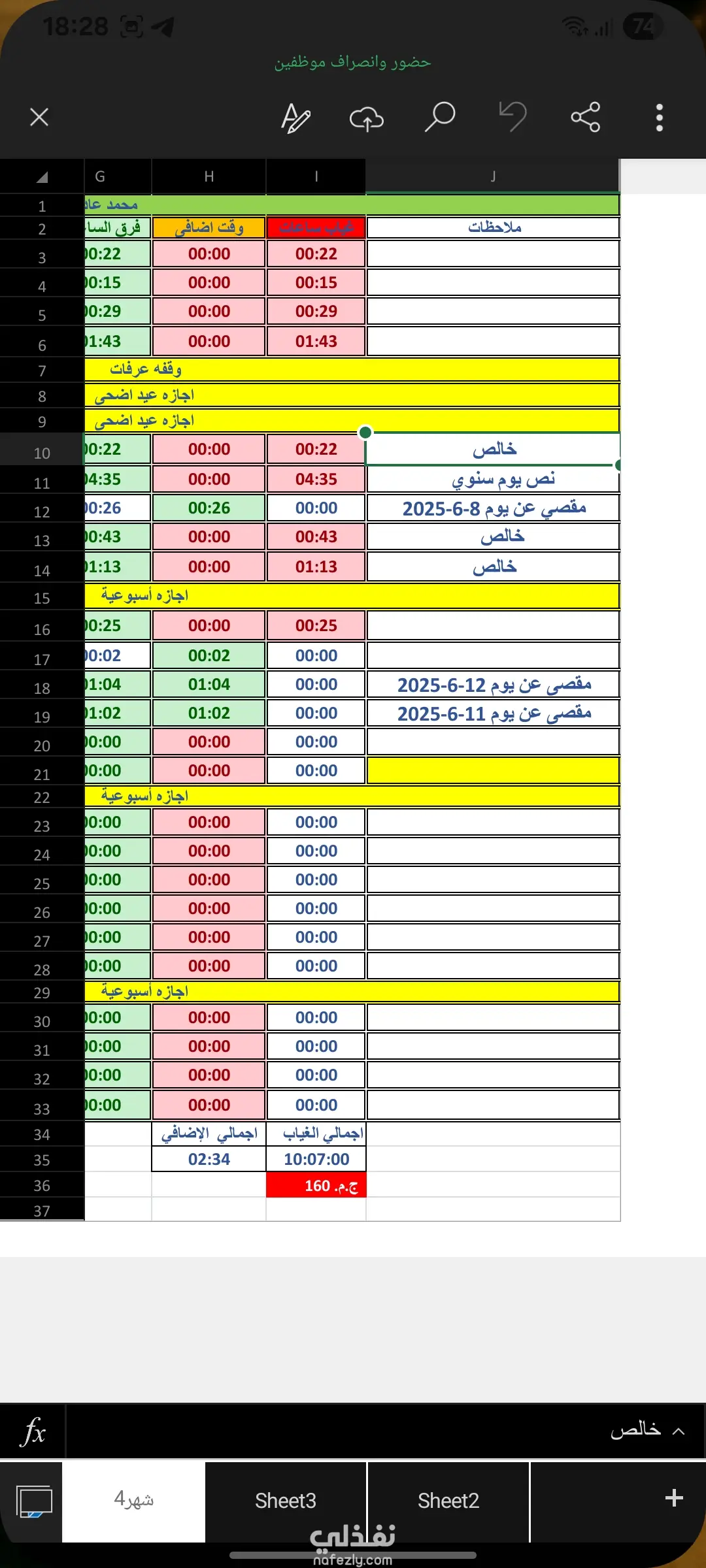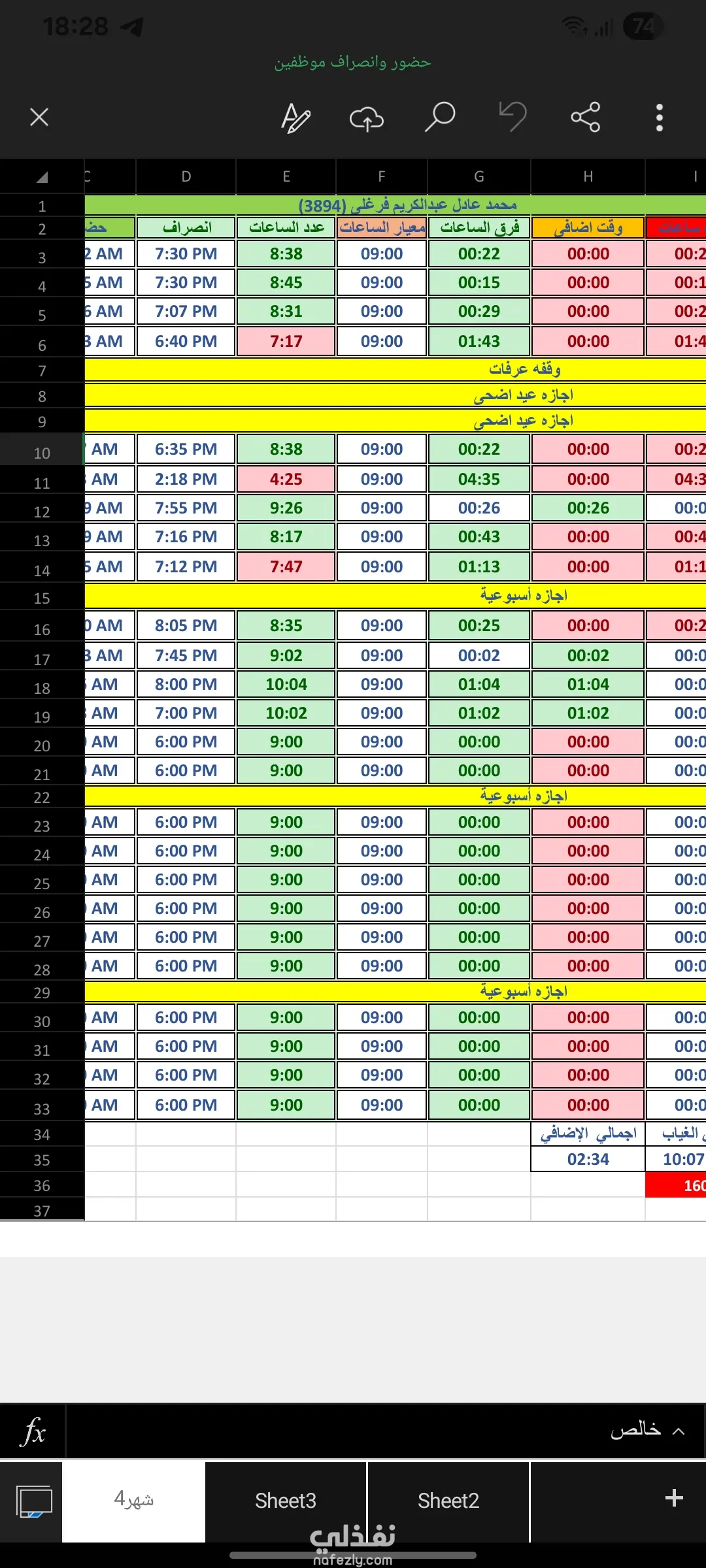 تقرير كامل يتابع حركة حضور وانصراف الموظف كما يتم احتساب كلا من : الوقت الاضافى التاخيرات الإجازات الاسبوعية المسموح بها قيمة اليوم والساعة والدقيقة لاحتساب قيمة التاخير او الاضافى
