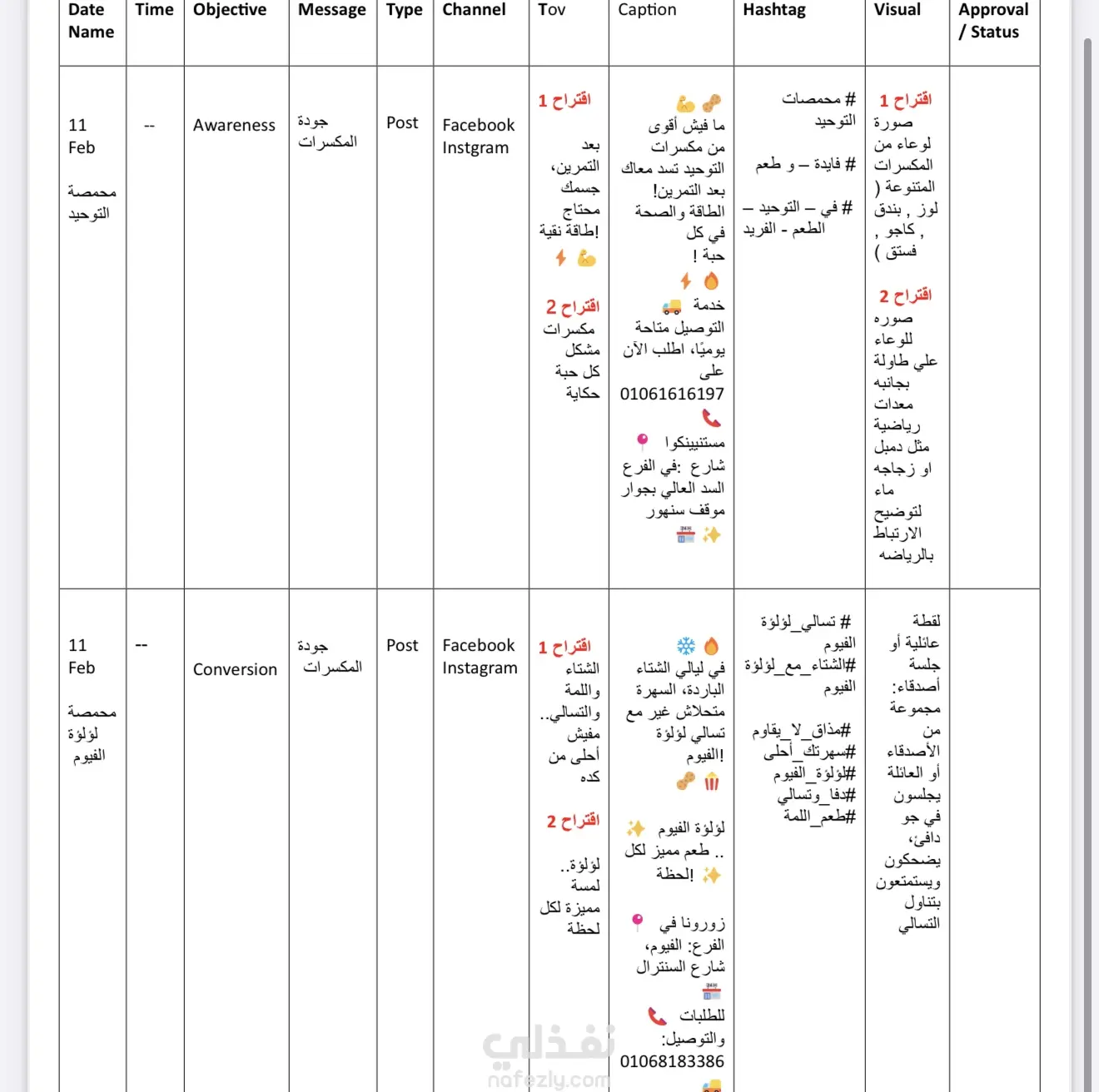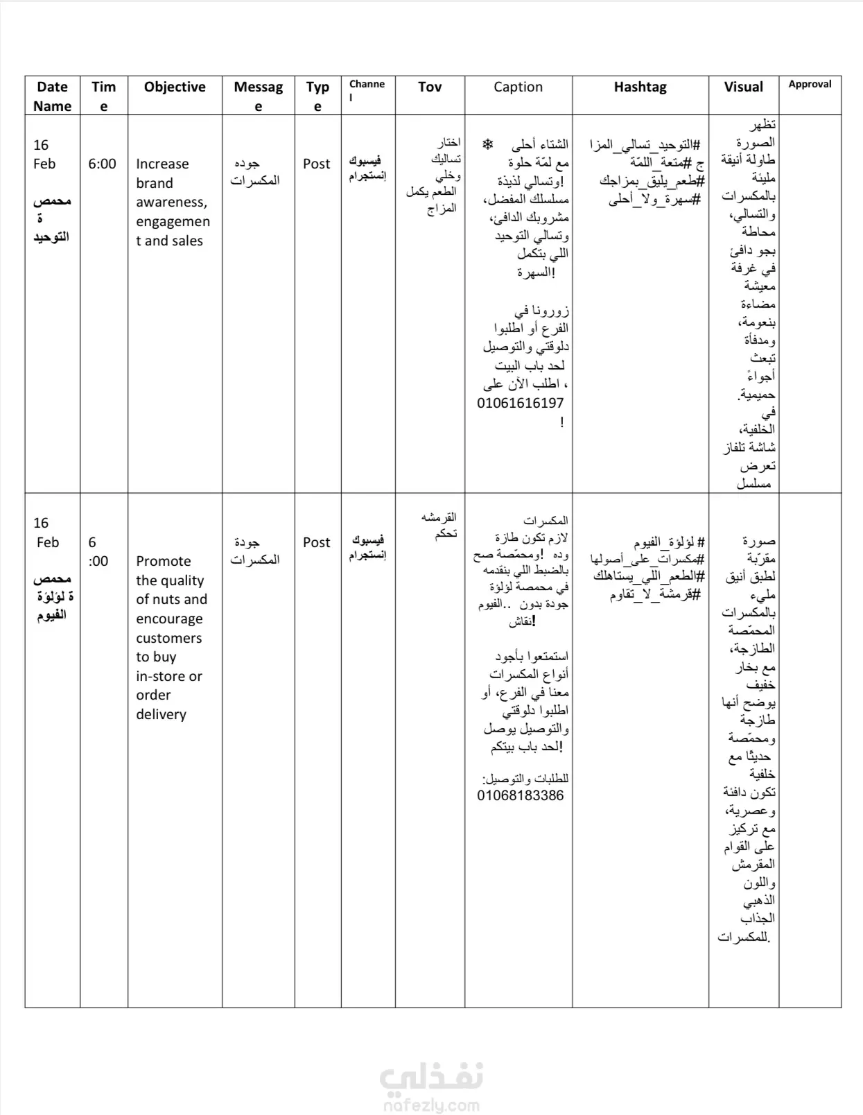 هذا المشروع يركز على تقديم خطة محتوى متكاملة وجاهزة للتنفيذ الفوري، حيث تم تحليل متطلبات الإعلان وتجهيز جميع عناصر النشر ضمن جدول زمني مُحكم. تشمل الخدمة تحديد الهدف التسويقي (Objective) لكل منشور، صياغة النصوص الجذابة (Caption)، اختيار الهاشتاجات الفعالة (Hashtag)، وتخصيص القناة المناسبة (فيسبوك/إنستجرام). الأولوية هي الالتزام المطلق بالجدول الزمني والتوقيتات المحددة (16 فبراير، 6:00)، مع توجيه دقيق لنوع المحتوى المرئي المطلوب (Visual) لضمان تحقيق أهداف الحملة (زيادة الوعي والمبيعات) بكفاءة وفعالية.