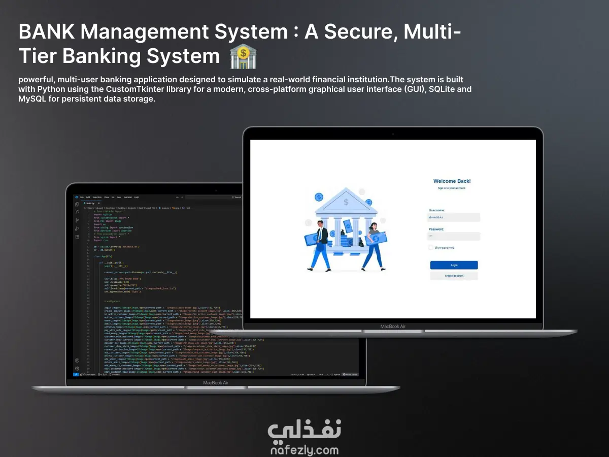 تطبيق مصرفي قوي ومتعدد المستخدمين، مصمم لمحاكاة بيئة مؤسسة مالية حقيقية.