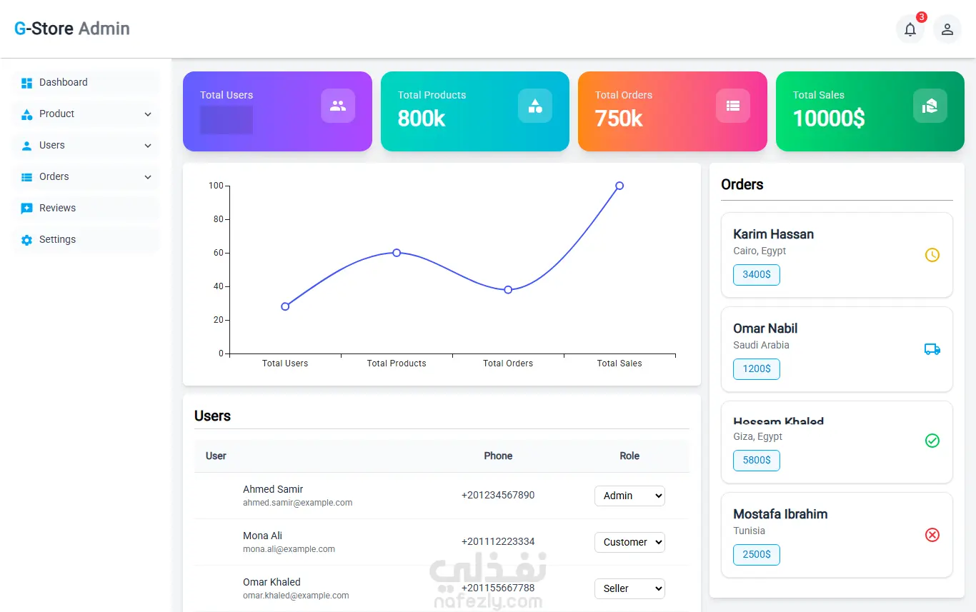 تصميم وتطوير واجهة Dashboard احترافية متصلة بواجهة برمجية (API)