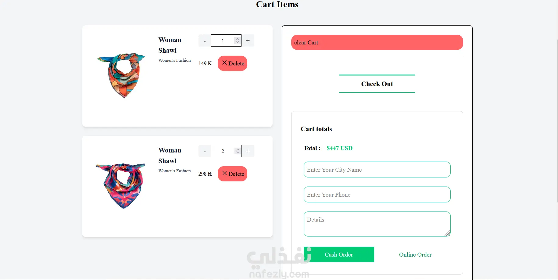 FreshCart – متجر إلكتروني متكامل تم تطويره باستخدام React.js، مع واجهة عصرية ومتجاوبة تعمل بسلاسة على جميع الأجهزة (موبايل، تابلت، كمبيوتر). يتميز الموقع بعربة التسوق (Cart) لإدارة الطلبات بسهولة، وقائمة الأمنيات (Wishlist) لحفظ المنتجات المفضلة، بالإضافة إلى نظام دفع سلس وآمن يضمن تجربة تسوق كاملة للمستخدمين. الموقع مصمم بعناية مع التركيز على تجربة المستخدم (UX) وواجهة جذابة (UI)، كما تم استخدام أحدث تقنيات Front-End لضمان سرعة الأداء وسلاسة التنقل بين الصفحات. FreshCart يمثل مثال عملي لمهاراتي في تطوير تطبيقات E-commerce باستخدام React و Tailwind CSS أو Bootstrap، مع القدرة على تنفيذ وظائف ديناميكية ومعقدة بطريقة منظمة واحترافية.