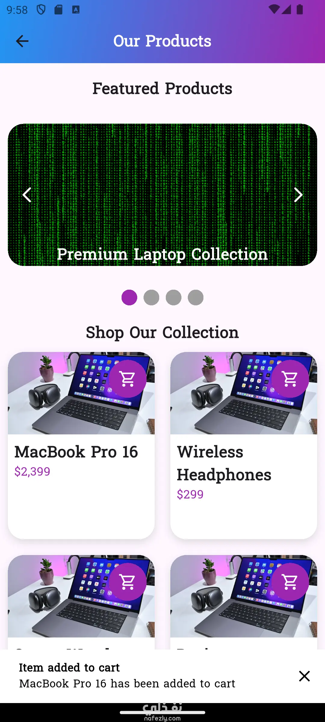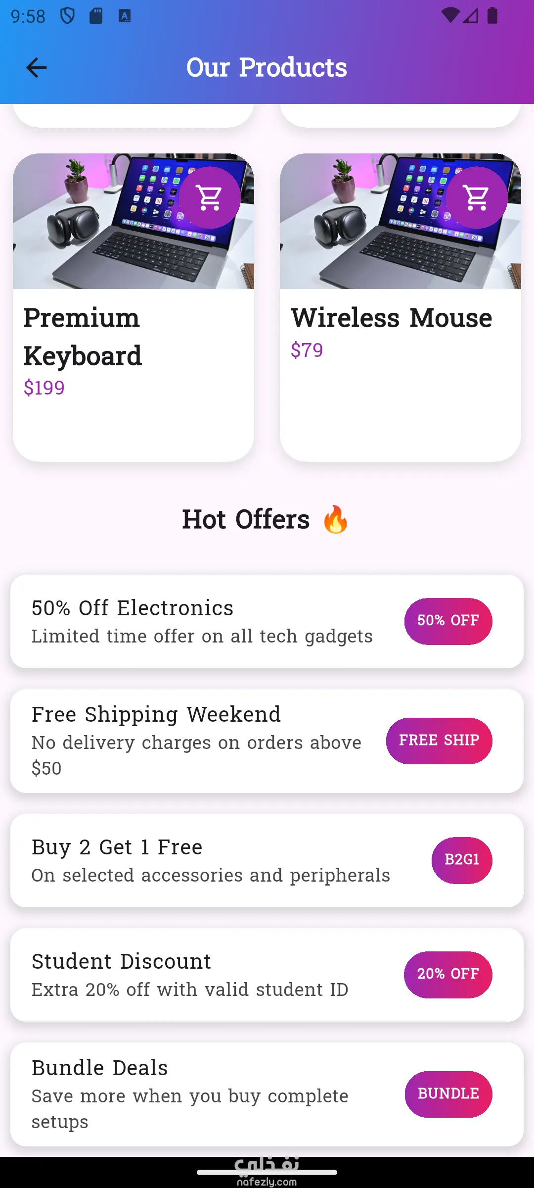 ️ قسم العروض: يعرض أحدث العروض والخصومات بتصميم جذّاب وخلفيات متدرجة الألوان.