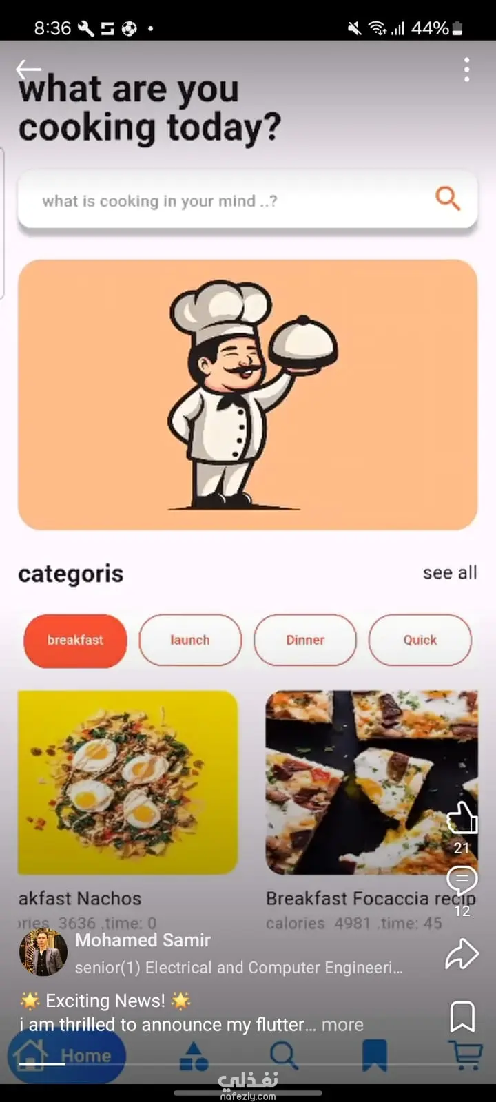 I developed a Recipe App using Flutter & Dart, designed with a clean and user-friendly interface. Key features: Browse Recipes: UI to display a list of recipes with images, titles, and short descriptions. Recipe Details Page: Shows ingredients, preparation steps, and cooking time. Search Functionality: Users can search recipes by name or category. Favorites: Save recipes to a favorites list for quick access. Dark Theme Support: Smooth experience in both light and dark modes. Tech stack: Flutter, Dart Platforms: Android & iOS IDE: VS Code This project demonstrates my skills in: Building responsive UI with Flutter. Managing navigation between multiple screens. Implementing search & favorites functionality.