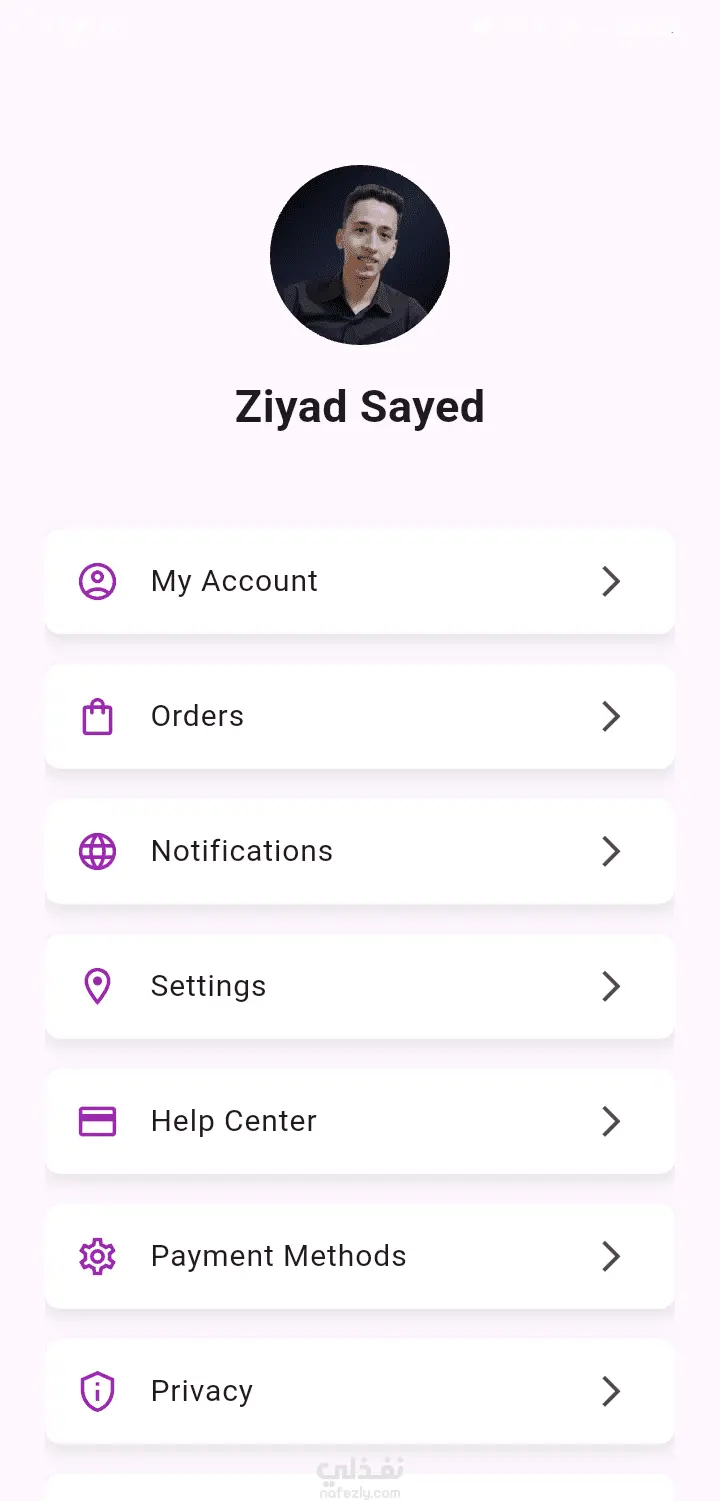 شاشات إدارة حساب المستخدم: تم تطوير شاشة الملف الشخصي التي تسمح للمستخدم بالوصول إلى الإعدادات، الطلبات، طرق الدفع، وغيرها من الخيارات الأساسية.