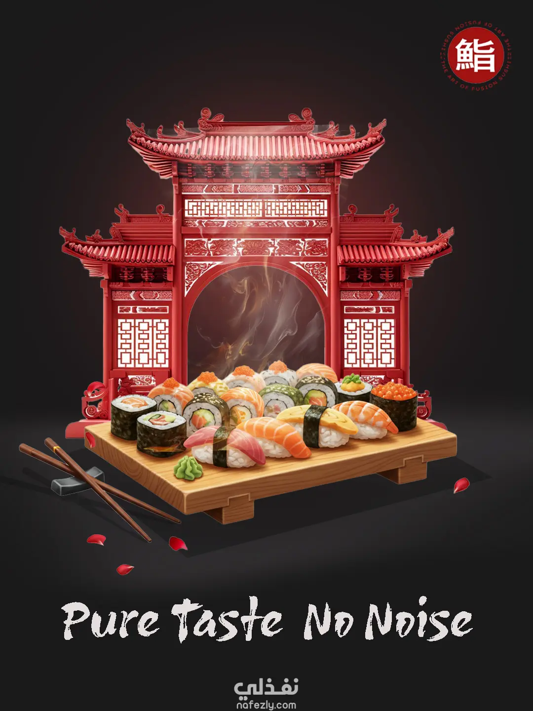 قمت بتصميم حملة إعلانية لمطعم سوشي تهدف إلى إبراز الهوية اليابانية الأصيلة للمطعم.