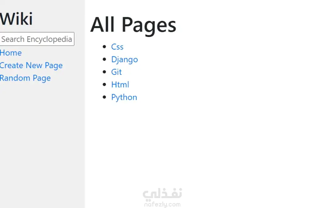 موقع معلمومات مثل WIKIPEDIA يسمح لك باضافة موضوع والتعديل تمام مثل موقع Wikipedeia يتم تخزين البيانات في SQL database ايضا تنفيذ واجهة الموقع الامامية باستخدام HTML, css وتصميم الواجهة الخلفية باستخدام Django framework