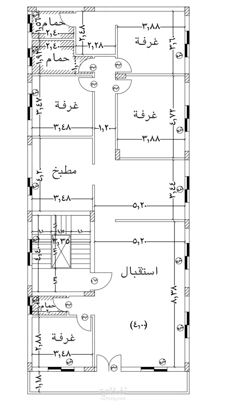 تصميم منزل عائلي مكون من دور أرضي واول على مساحه أرض ٣٦٤ بمسطح ٢٠٠ متر مربع للدور . كل دور عبارة عن شقة سكنية ٣ غرف منهم غرفة ماستر وحمام ضيوف ومطبخ وريسبشن بمساحة كبيرة .