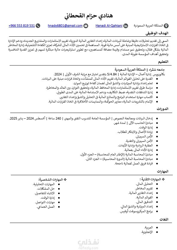 سيرة احترافية تعكس الصورة المهنية بأفضل شكل ومتوافقة مع أنظمة ATS