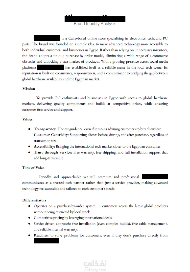 هدف المشروع: تحليل وتطوير هوية واضحة وإستراتيجية متكاملة للتسويق عبر الإنترنت لعلامة تجارية تعمل في مجال التقنية وبيع المنتجات عبر الإنترنت