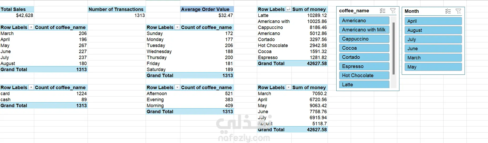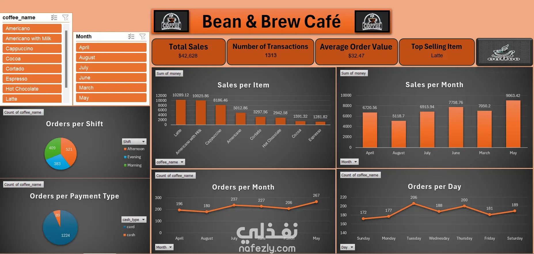 طورت لوحة معلومات Excel خاصة بمبيعات كافيه لعرض وتحليل بيانات المبيعات اليومية والشهرية. الداشبورد يتضمن KPIs رئيسية مثل إجمالي الإيرادات، عدد الطلبات، ومتوسط قيمة الطلب، بجانب مخططات بصرية توضح أفضل المنتجات مبيعًا وأوقات الذروة. تمت إضافة أدوات تصفية ديناميكية لعرض البيانات حسب الفروع أو الفترات الزمنية، مما يساعد على متابعة الأداء واتخاذ قرارات مبنية على بيانات دقيقة. العمل يعكس مهارتي في تحويل بيانات خام إلى لوحة احترافية سهلة الاستخدام.