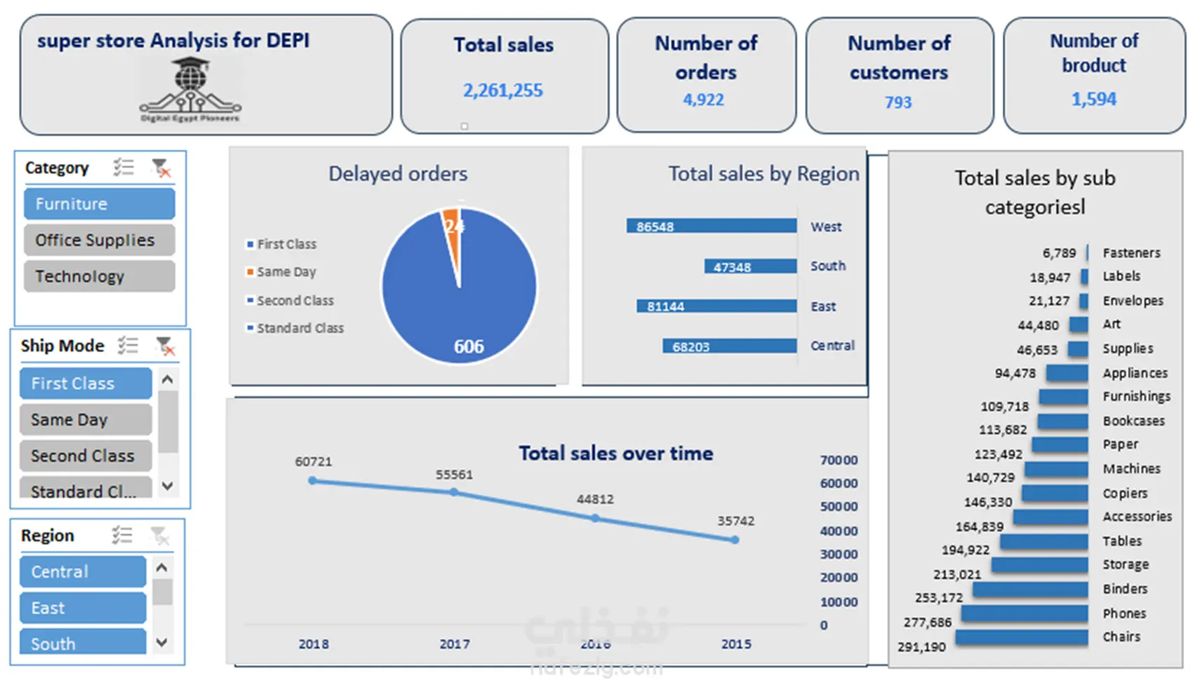 تحليل بيانات Superstore وتصميم Dashboard تفاعلي باستخدام Excel