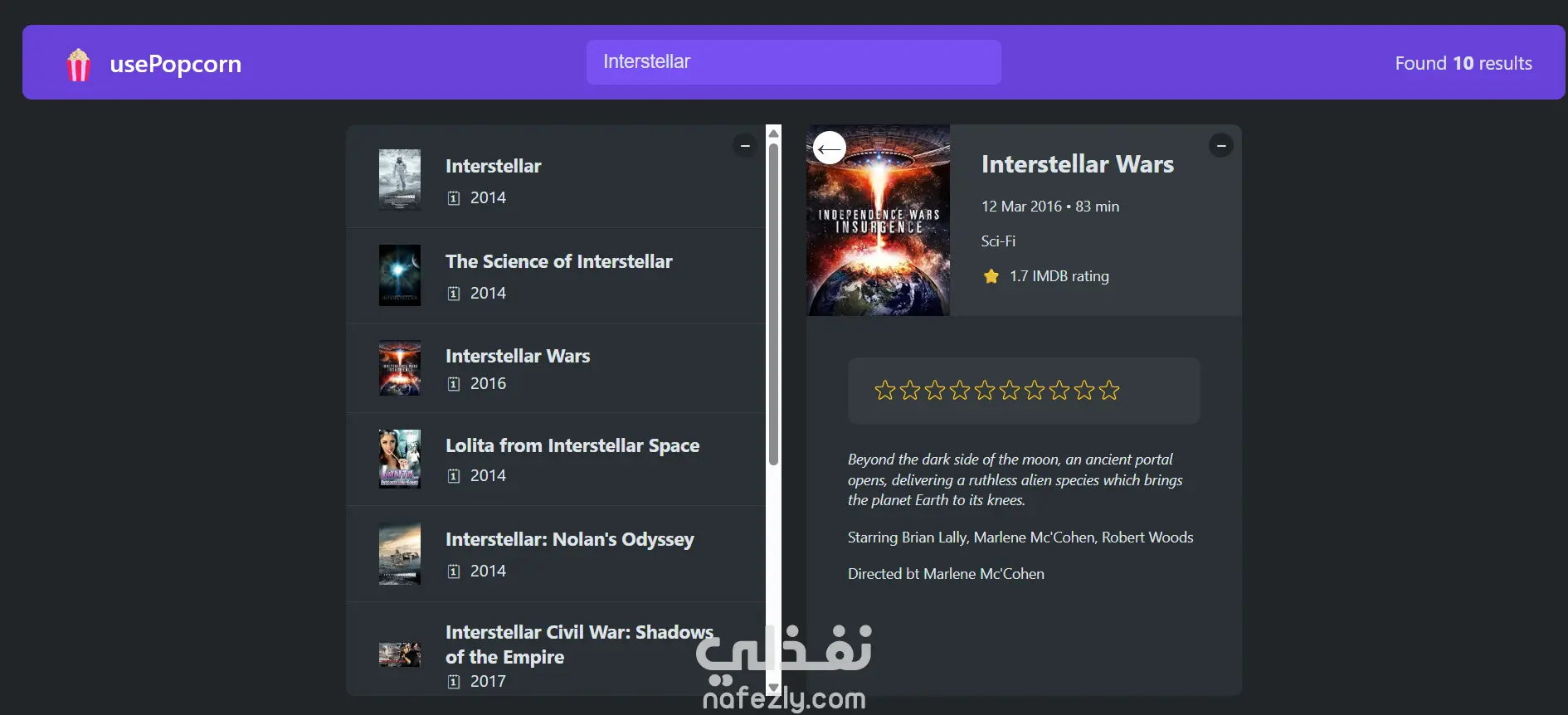 تطبيق ويب تفاعلي لمتابعة وحجز الأفلام تم تطويره باستخدام تقنيات حديثة مثل React وواجهة مستخدم متجاوبة. يوفر تجربة سلسة للمستخدم مع إمكانية استعراض تفاصيل الأفلام، البحث، وإضافة المفضلة. المشروع يركز على الأداء والسهولة في الاستخدام مع تصميم عصري وجذاب.