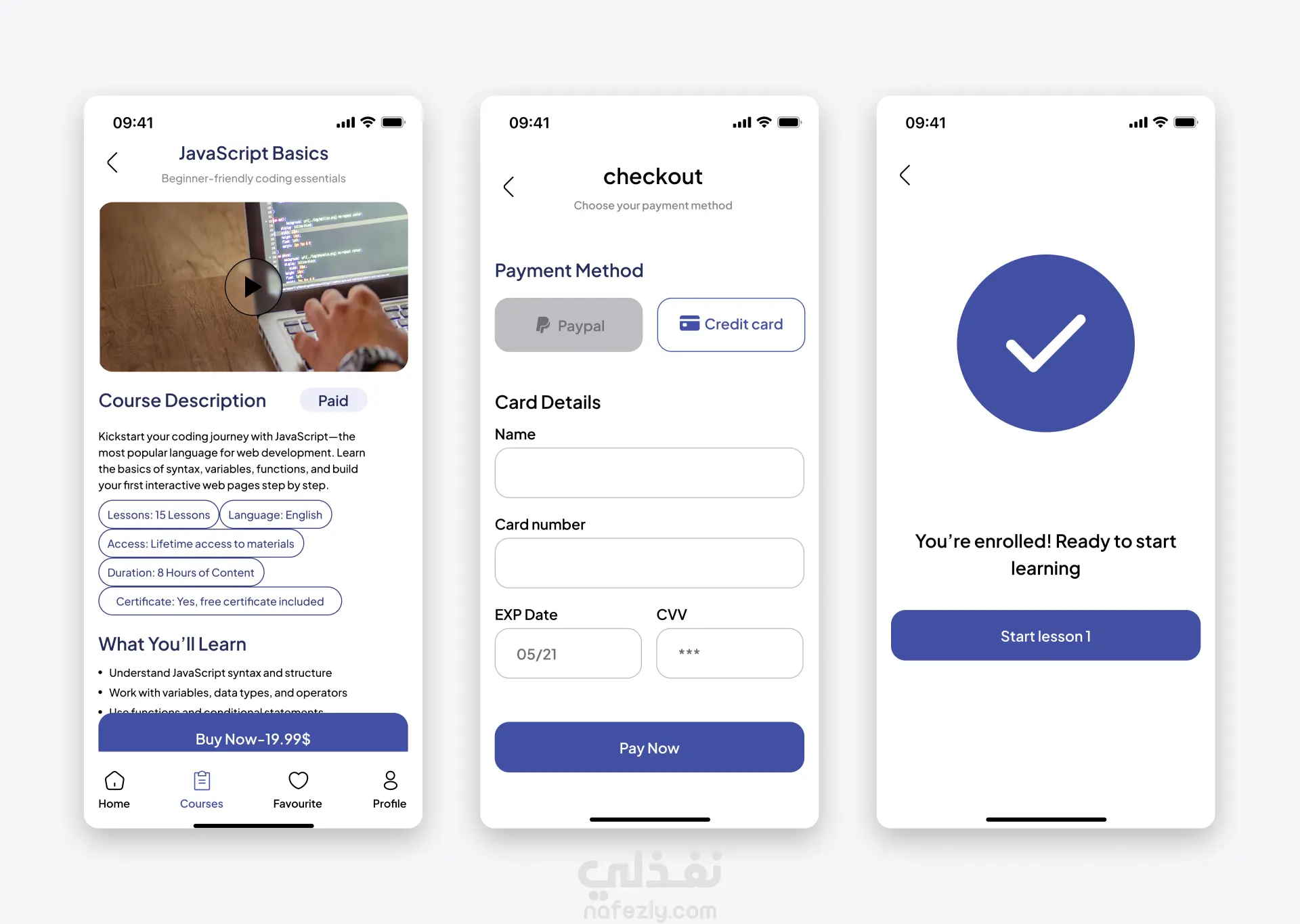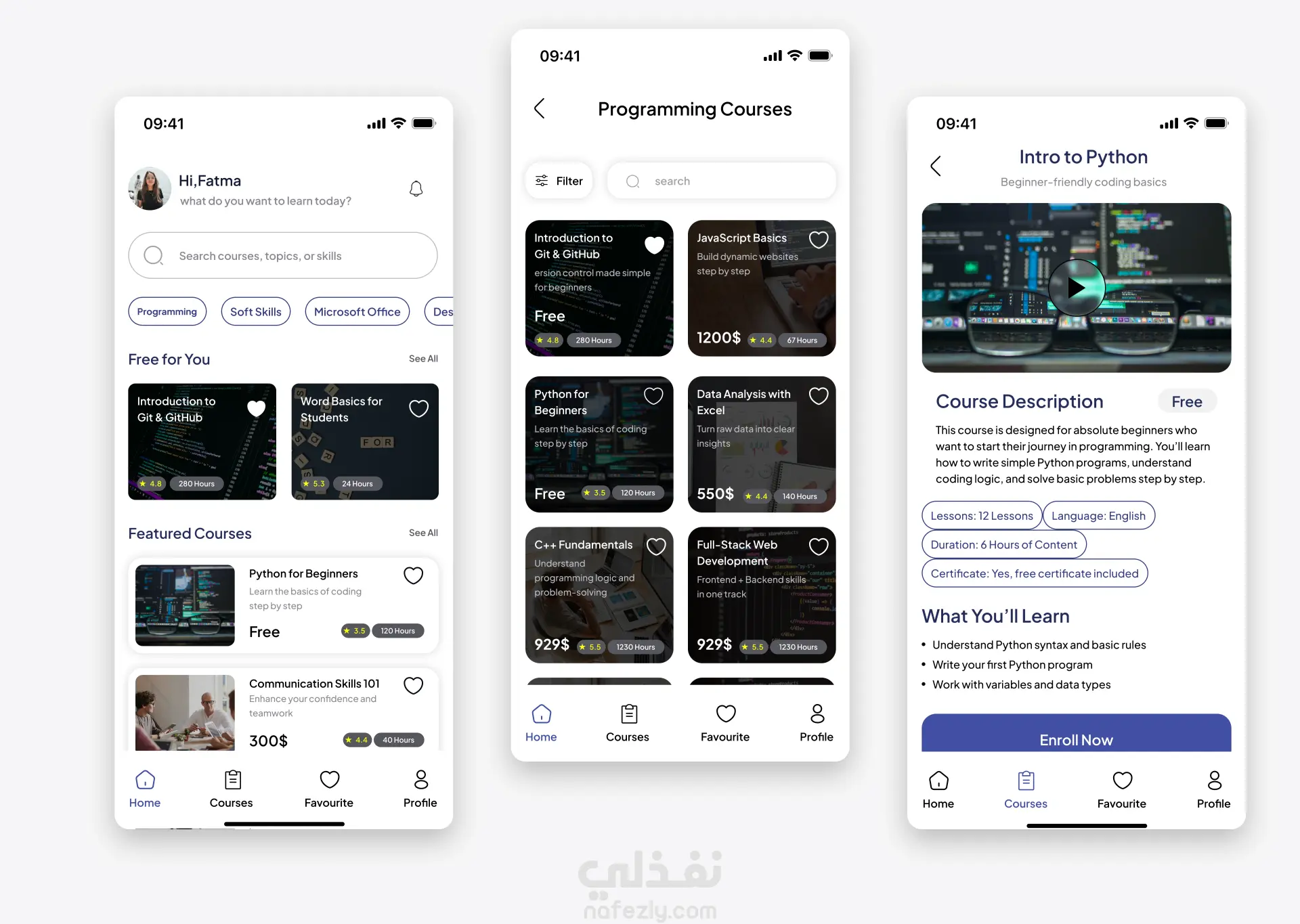 تطبيق تعليمي بتصميم واجهة عصرية وسهلة الاستخدام، يهدف إلى جعل عملية التعلّم الذاتي أكثر متعة ومرونة من خلال تجربة مستخدم سلسة وجذابة. يضم التطبيق مجموعة من الشاشات الأساسية، تشمل: - شاشات البداية (Onboarding) التي تُعرّف المستخدم بفكرة التطبيق ومميزاته. - شاشتي التسجيل وتسجيل الدخول (Sign Up & Sign In) بتصميم بسيط وواضح. - الصفحة الرئيسية التي تُبرز أحدث الدورات التعليمية والمحتوى الموصى به. - صفحة مخصصة لجميع الدورات، تضم الكورسات المجانية والمدفوعة بشكل منظم يسهل على المستخدم التصفّح والاختيار. تم تنفيذ المشروع باستخدام أدوات التصميم Figma وFigJam، مع التركيز على بناء تجربة مستخدم تفاعلية وهوية بصرية عصرية تُحفّز المستخدم على الاستمرار في التعلّم.