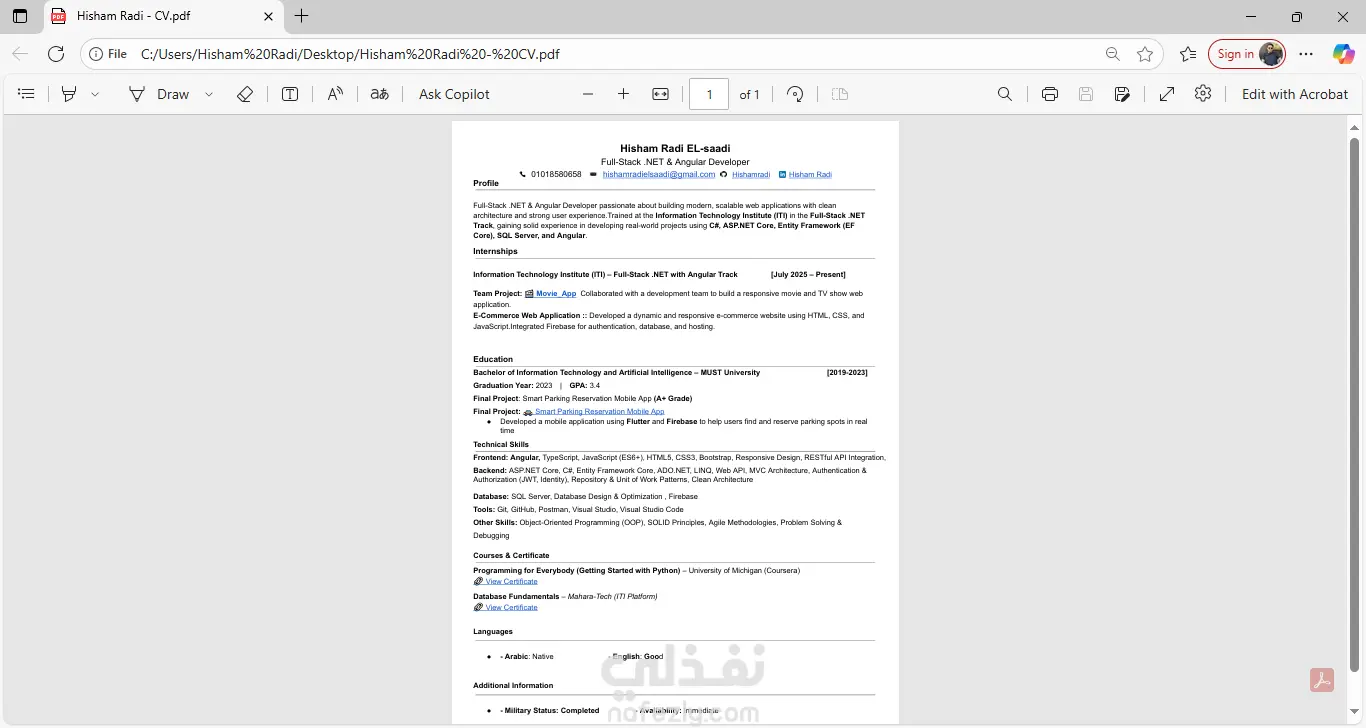 أنا هنا لمساعدتك في تصميم وكتابة CV احترافية تساعدك في الحصول على فرصتك الوظيفية! ما الذي ستحصل عليه؟ كتابة احترافية باللغة العربية أو الإنجليزية تصميم جذاب وعصري يناسب مجال عملك إبراز نقاط قوتك وخبراتك بشكل مميز تنظيم السيرة الذاتية بطريقة سهلة القراءة وجاذبة لأصحاب العمل تسليم بصيغ متعددة (PDF / Word) إمكانية التعديل حسب رغبتك بعد التسليم مميزات خدمتي: خبرة في إعداد السير الذاتية وفق معايير التوظيف العالمية استشارات مهنية عن كيفية تحسين ملفك الوظيفي سرعة في الإنجاز والتسليم أسعار مناسبة وجودة عالية