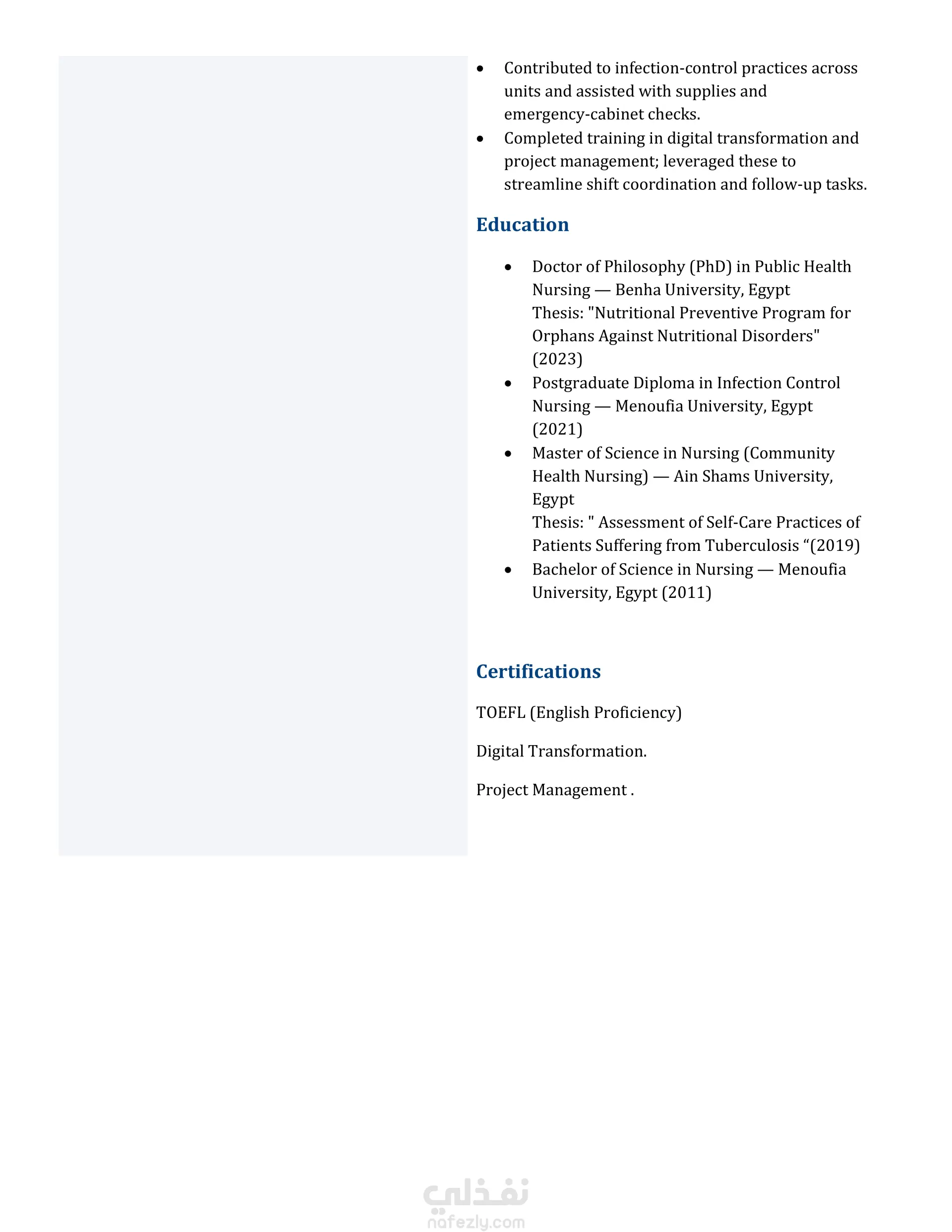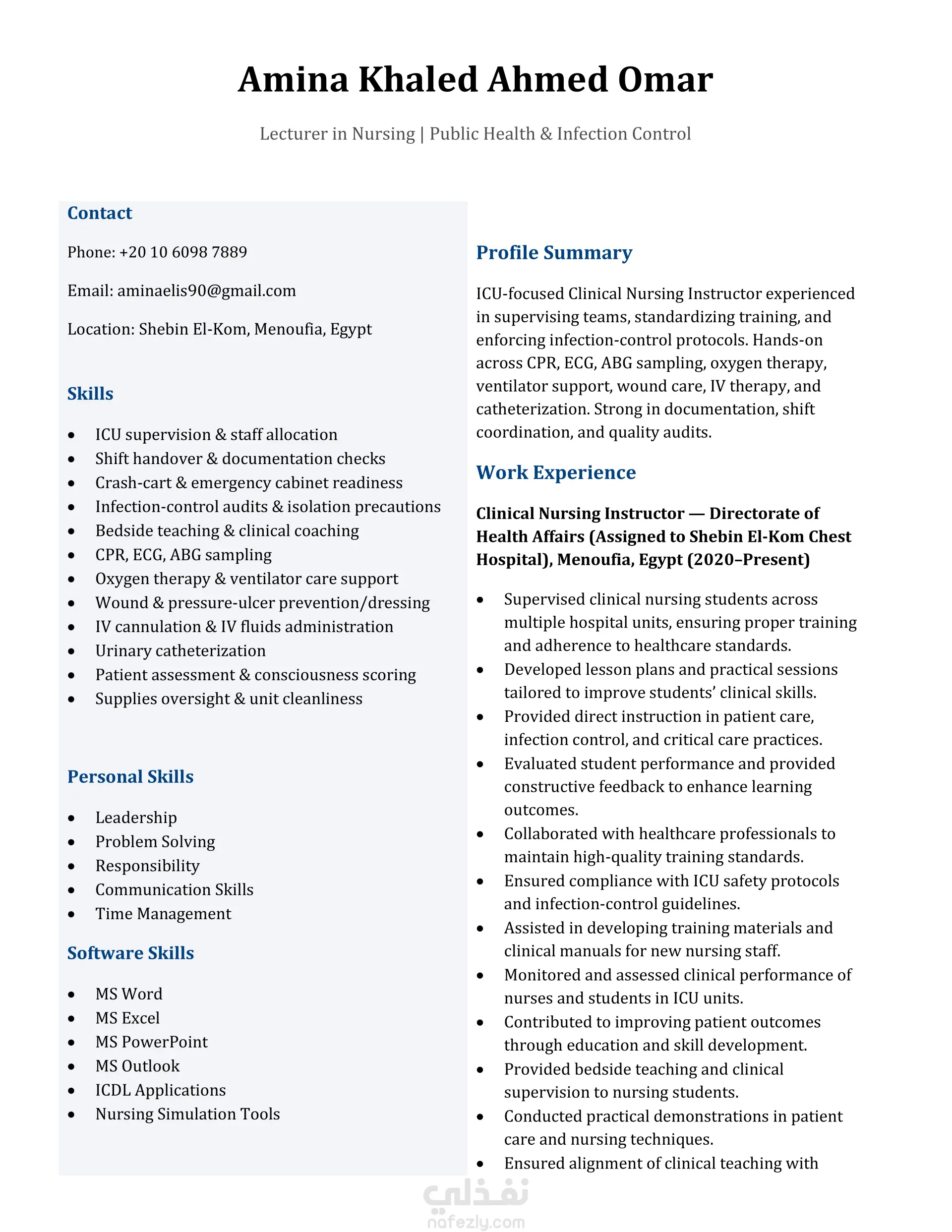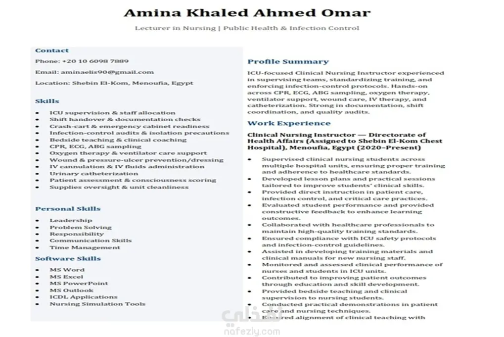 كتابة سيرة ذاتية للتقديم على وظائف التدريس فى مجال التمريض