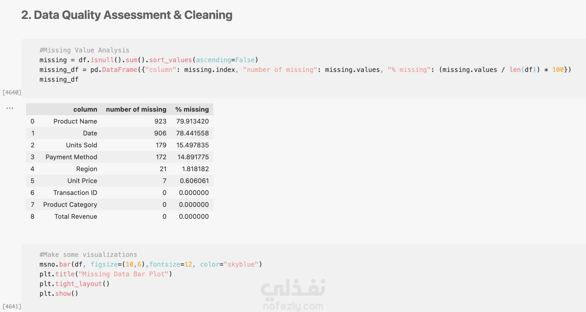 قمتُ بتنظيف والتحقق من صحة مجموعة بيانات المبيعات من خلال تصحيح أنواع البيانات، وإزالة القيم المكررة، وتوحيد الفئات. بعد ذلك، أجريتُ تحليلاً استكشافياً لاكتشاف الاتجاهات الرئيسية مثل أكثر فئات المنتجات شيوعاً، والمناطق الأعلى أداءً، وطرق الدفع المفضلة. وقد أسهم عملي في تحسين دقة البيانات، وتقديم رؤى واضحة، وتوفير توصيات قابلة للتنفيذ لدعم اتخاذ القرارات بشكل أفضل.