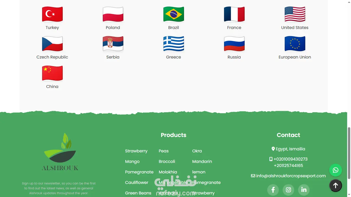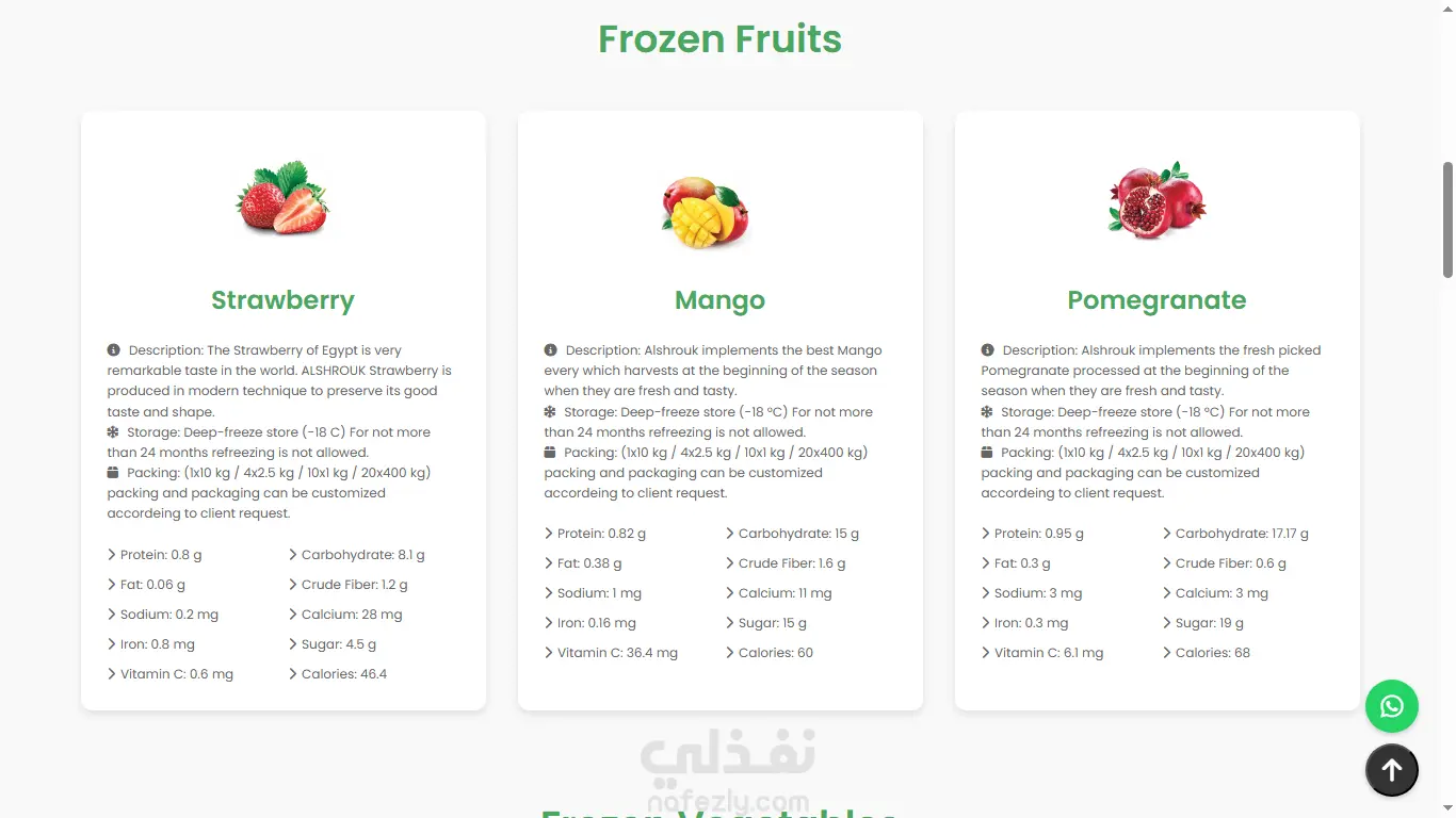 هذه الشركة تعمل فى التصدير المحاصيل المجمدة الى دول خارج مصر لذالك كان ولابد من برز ماتقدمة على موقع خاص بالشركة وخاص بالمنتجات المقدمة بتفاصيل كل منتج . وتم عمل براند خاص للشركة وعرضه فى الموقع