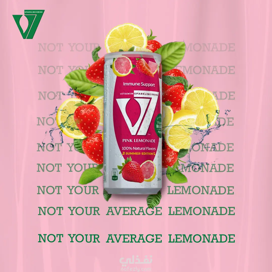 حملة إعلانية غير رسمية لمشروب V7 Pink Lemonade تهدف إلى إبراز طاقة العلامة وروحها الشبابية من خلال تصميمات سوشيال ميديا عصرية وجذابة. المشروب يتميز بطعمه المنعش ولونه الوردي الفاقع الذي يعكس الحيوية والمرح، لذلك تركز الحملة على إيصال رسالة “انتعش بطريقتك” لتشجع الجمهور على التعبير عن أسلوبهم الخاص. تعتمد الحملة على تصميم منشورات وإنستجرام ستوريات وتيك توك فيديوهات قصيرة بأسلوب ممتع وبصري قوي. الهوية البصرية ترتكز على ألوان وردية وصفراء ليمونية مع عناصر مرحة مثل شرائح الليمون والفقاعات والخلفيات المشرقة، مع استخدام خطوط حديثة وسهلة القراءة.