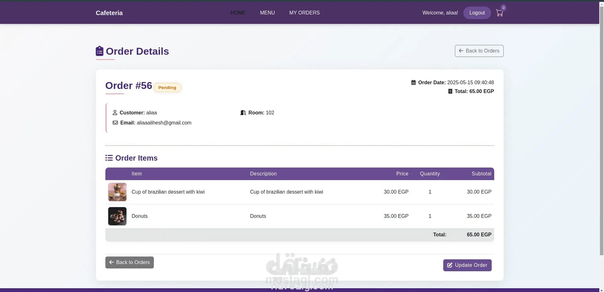 إدارة حالات الطلبات: يستطيع المسؤول تغيير حالة الطلب، ويتم تحديثها تلقائيًا للمستخدم.