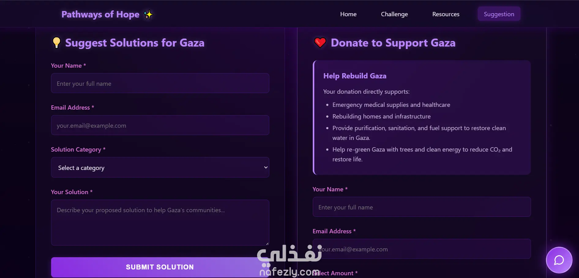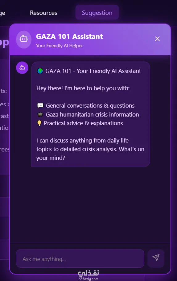 يتضمّن الموقع أدوات تحليل، محادثة ذكية (AI chatbot)، وصندوق تبرّعات للأفكار أو الدعم المالي، ما يقدّم حلولًا مبتكرة للمشاكل الواقعية التي تواجه سكان القطاع.