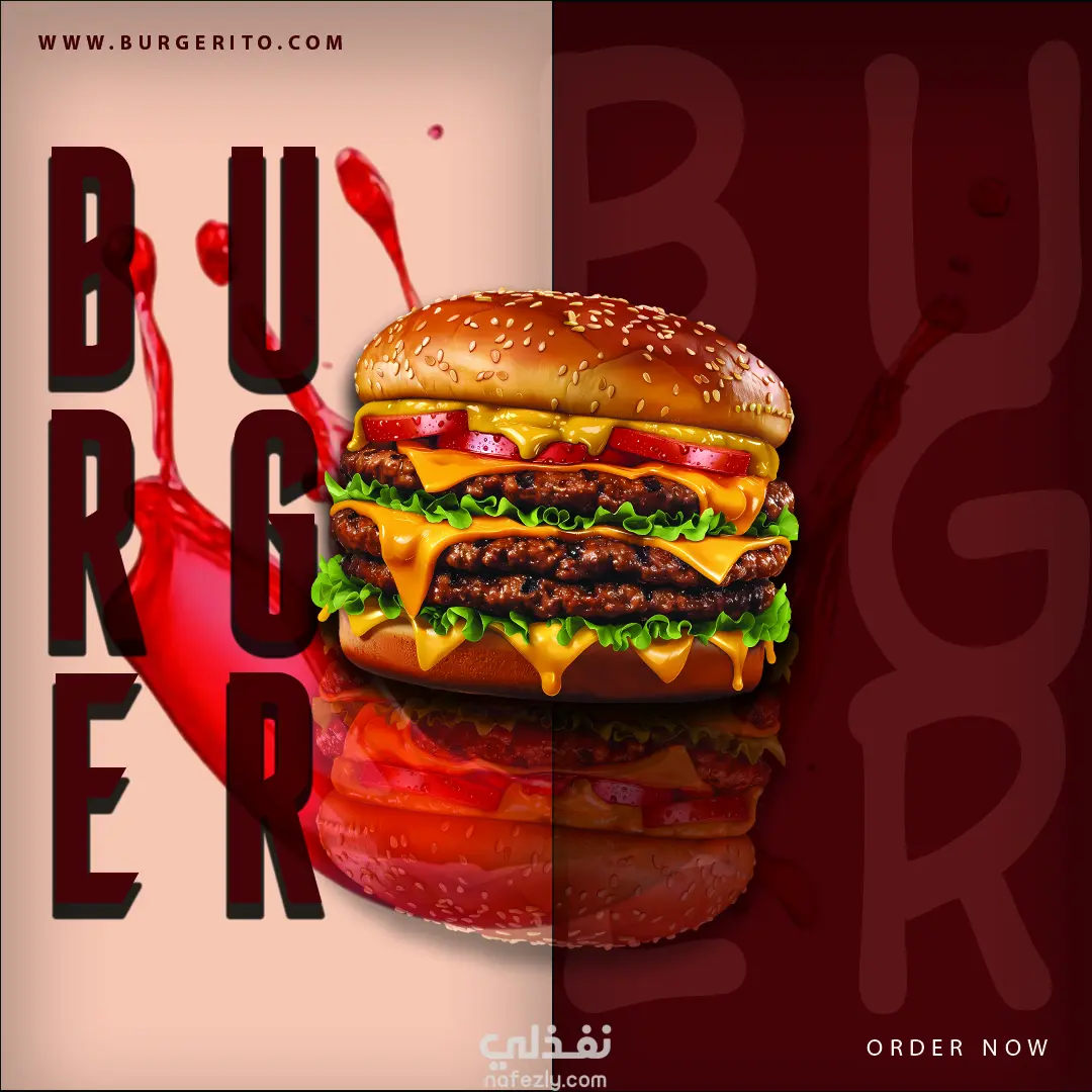 تصميم بوستر سوشيال ميديا لمطعم برجر وهمي من اوائل التجارب به بعد الاقتباسات