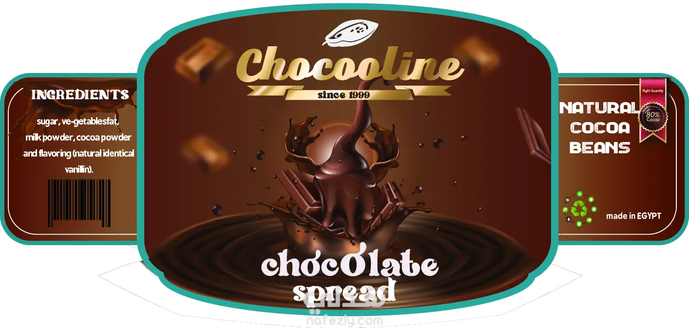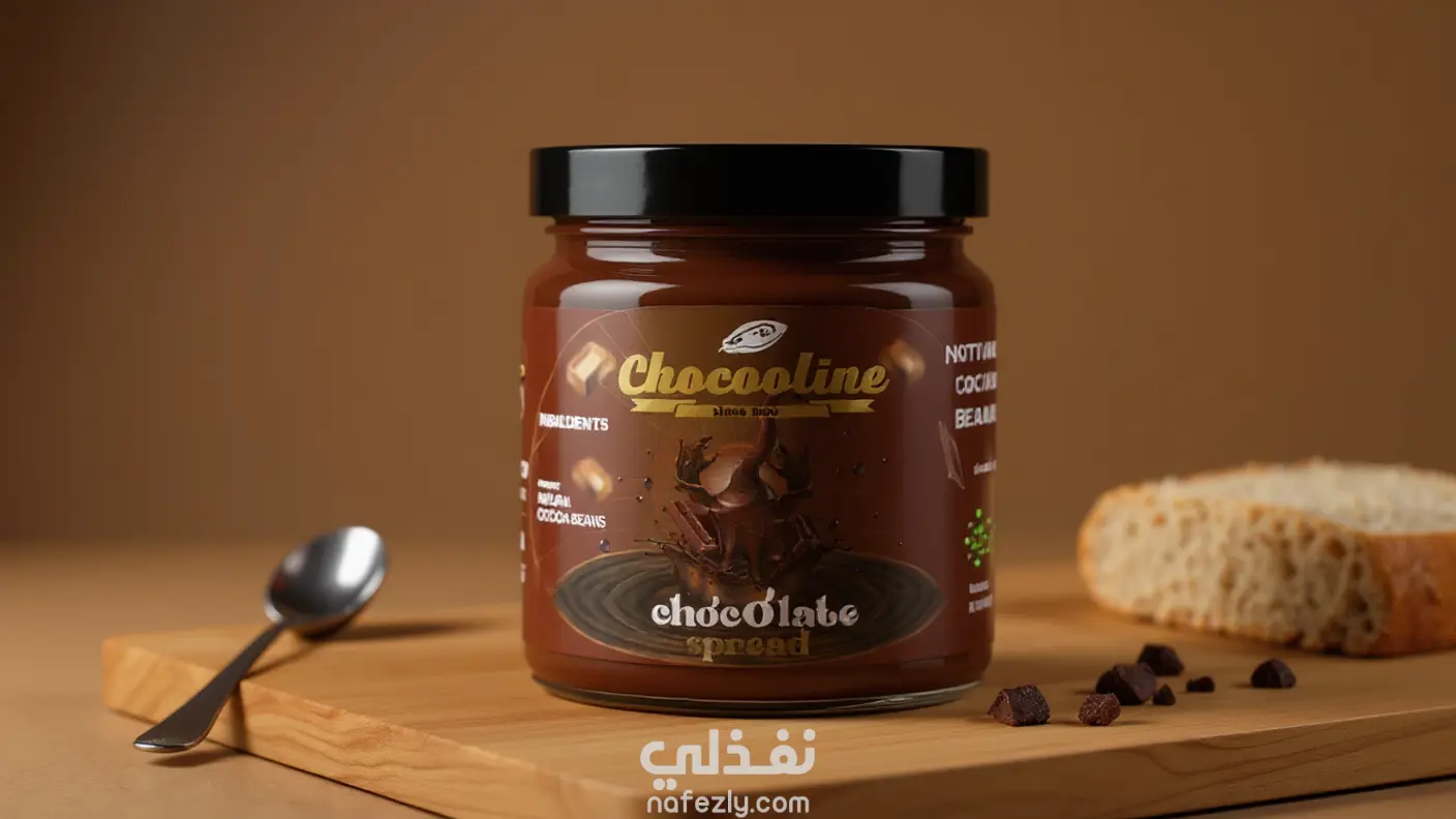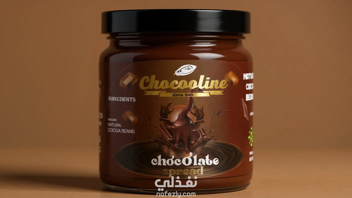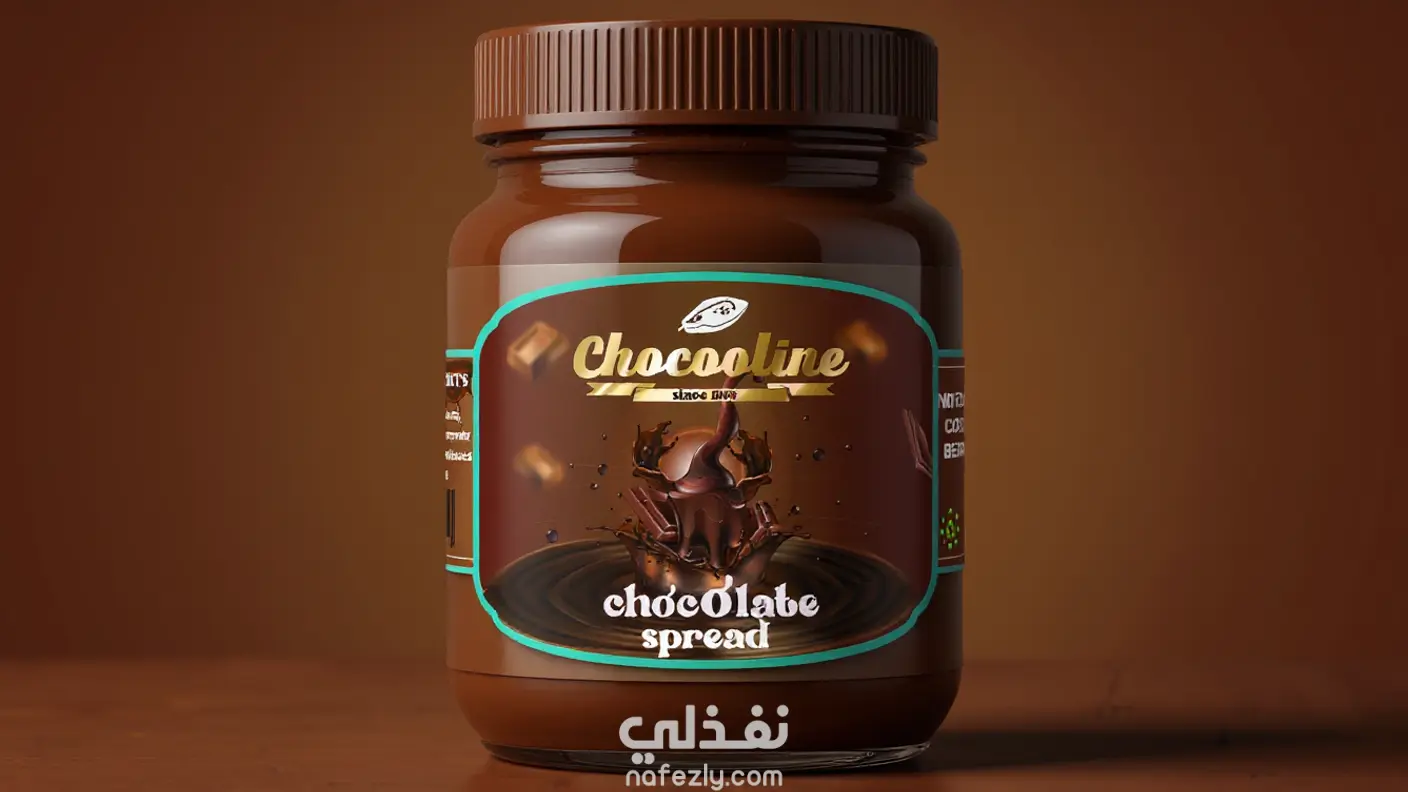 تصميم label لمنتج شوكولاته سبريد و وضعه علي موكب