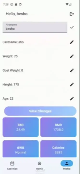 يهدف التطبيق إلى مساعدة المستخدمين في متابعة نشاطهم اليومي وتحقيق أهدافهم الصحية من خلال مجموعة من الخصائص الذكية، منها: - تتبع الخطوات اليومية. - تسجيل الأنشطة الرياضية. - حساب معدل الطاقة اليومية المستهلكة (TDEE). تم التركيز على تصميم واجهة مستخدم حديثة باستخدام Jetpack Compose لخلق تجربة سلسة وتفاعلية، مع تطبيق معمارية MVVM لضمان سهولة صيانة الكود وتنظيمه. شارك في تنفيذ المشروع فريق من المطورين ضمن المبادرة، وكان دوري تطوير واجهات التطبيق باستخدام Jetpack Compose وربطها بالمنطق البرمجي (ViewModel & Database).