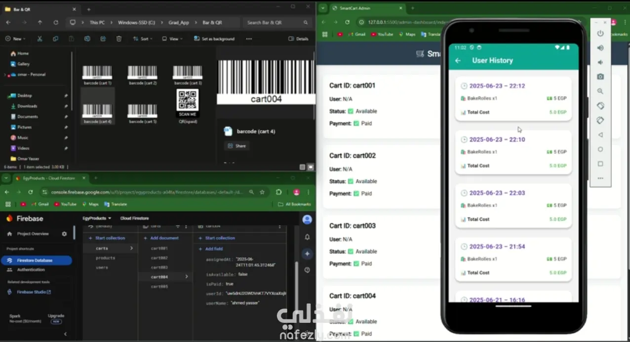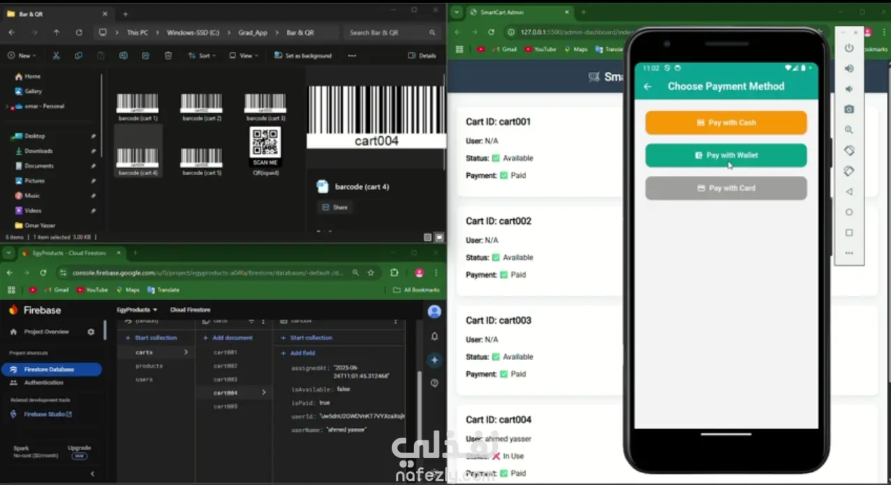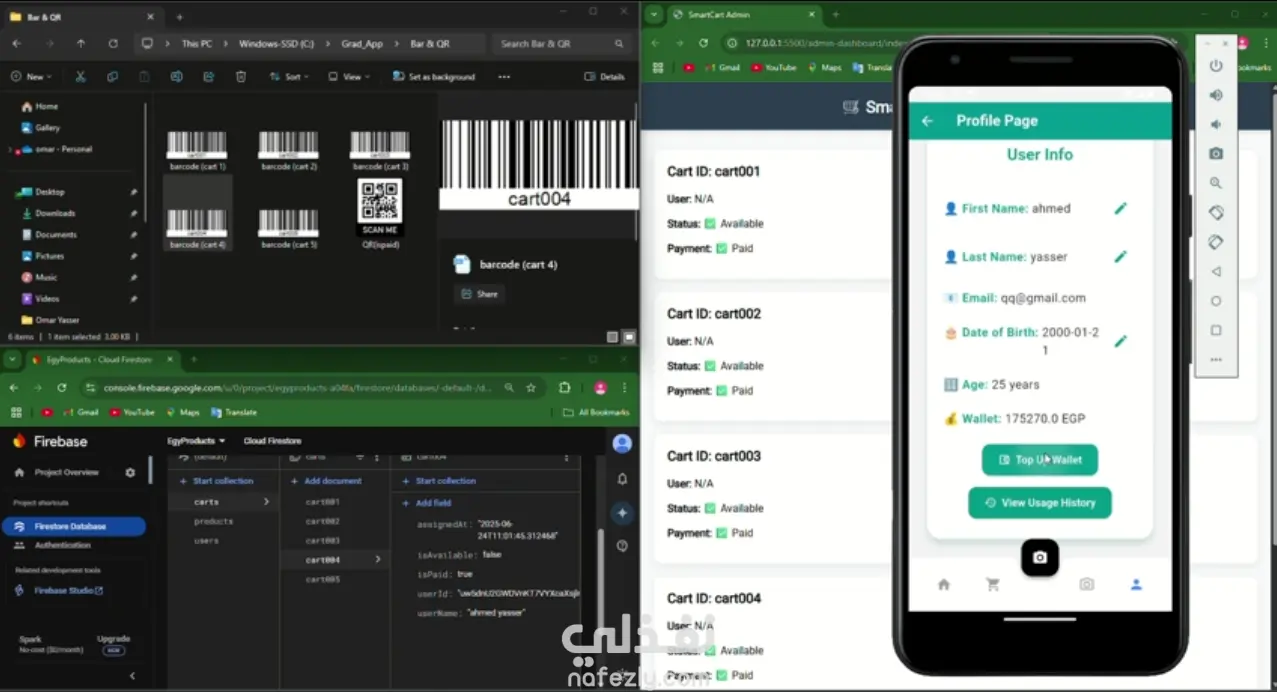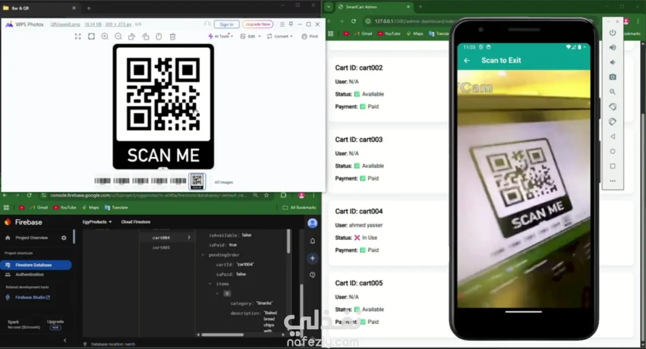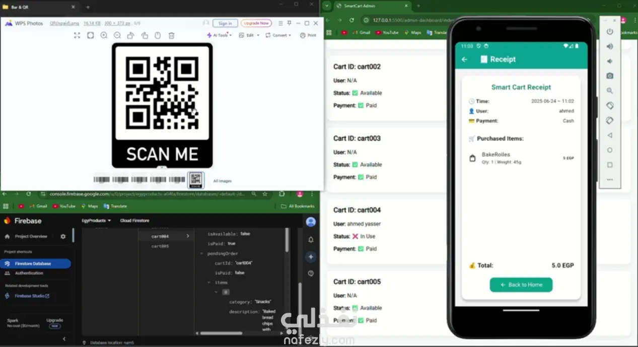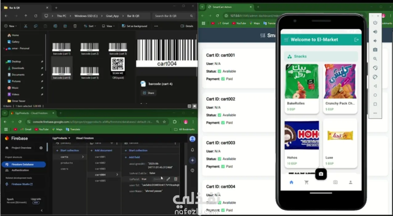 يهدف التطبيق إلى مساعدة المستخدمين على التسوق بسهولة من خلال عربة ذكية قادرة على: التعرف على المنتجات الموضوعة داخل العربة باستخدام الكاميرا. حساب السعر الإجمالي تلقائيًا دون الحاجة للمرور على الكاشير. عرض تفاصيل المنتج والأسعار مباشرة على واجهة الهاتف. تم استخدام مجموعة من التقنيات الحديثة في بناء المشروع، منها: Flutter وAndroid Studio لتطوير واجهة المستخدم متعددة المنصات. YOLOv11 للتعرف على المنتجات. PaddleOCR لاستخراج النصوص من عبوات المنتجات. SAM2 لتجزئة الصور وتحسين دقة التعرف. Firebase لتخزين البيانات وإدارة العمليات السحابية. كما قمت بإنشاء قاعدة بيانات لمنتجات مصرية تحتوي على صور وبيانات تفصيلية تم تجميعها يدويًا خصيصًا للمشروع، وتم رفعها على منصة Kaggle لتكون مرجعًا مفتوحًا قابلًا لإعادة الاستخدام والتطوير. شارك في تنفيذ المشروع فريق من المطورين، وكان دوري البحث والتطوير في جانب الذكاء الاصطناعي، بما في ذلك اختيار النماذج المناسبة (YOLOv11, PaddleOCR, SAM2) ودمجها مع التطبيق لضمان أداء عملي ودقيق أثناء عملية التعرف على المنتجات.