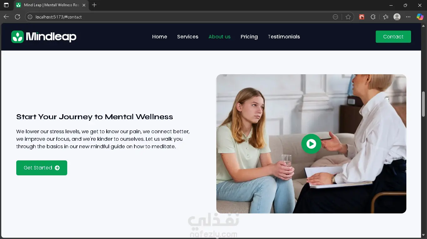 MindLeap – واجهة موقع خدمات للصحة النفسية | قالب React احترافي