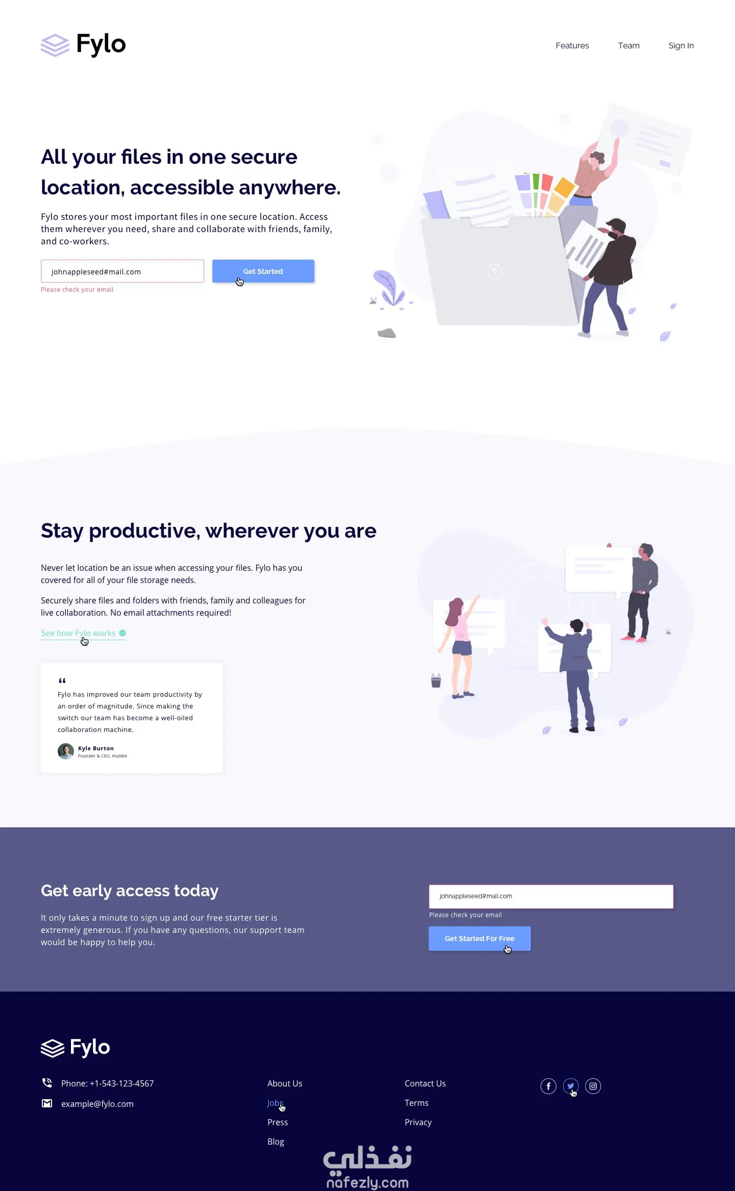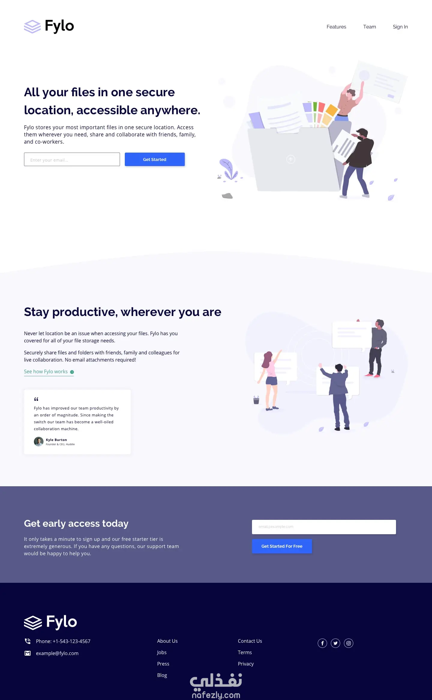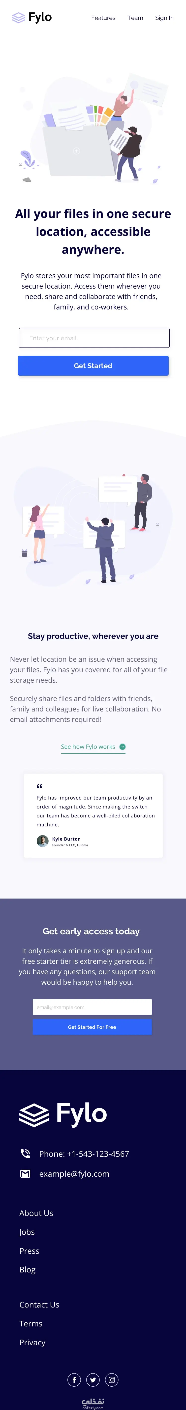 موقع فلايو لرفع وحفظ الملفات في مكان آمن - صفحة هبوط متجاوبة