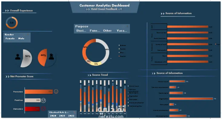 اللوحة تقدم نظرة شاملة تساعد إدارة الفندق على تحسين تجربة العملاء واستراتيجيات التسويق.