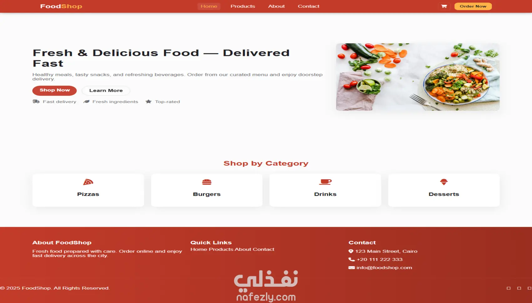 تصميم واجهة موقع مطعم أو متجر طعام متكامل | Food Shop Web App