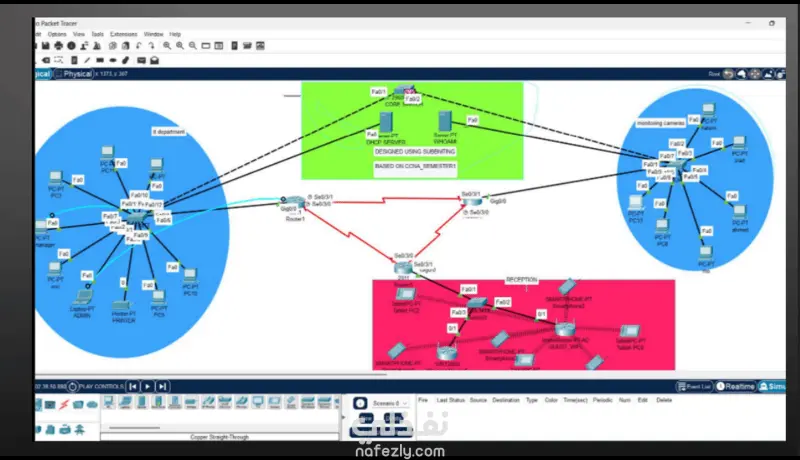 MINI HOTEL NETWORK TOPOLOGY WITH CONFIGURATION BY PACKET TRACER INCLUDING SWITCHES , ROUTERS AND SERVERS All with configurations توبولوجي شبكة فندق صغير مع تهيئة باستخدام Packet Tracer تشمل مفتاحات، راوترات ومخدمات جميعها بتهيئات معدة مسبقًا