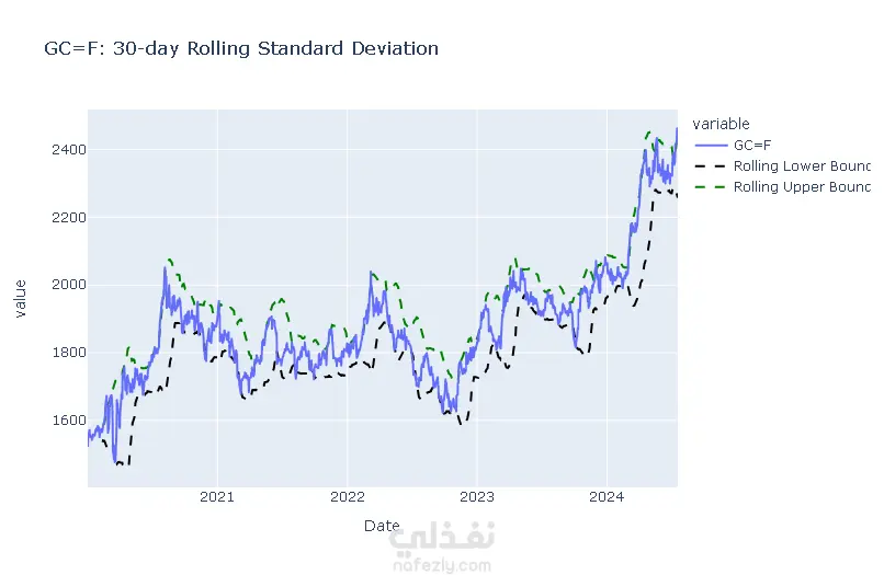 العوائد اليومية: تُحسب كنسبة مئوية للتغير في أسعار الإغلاق المعدلة لتقييم التقلبات اليومية.