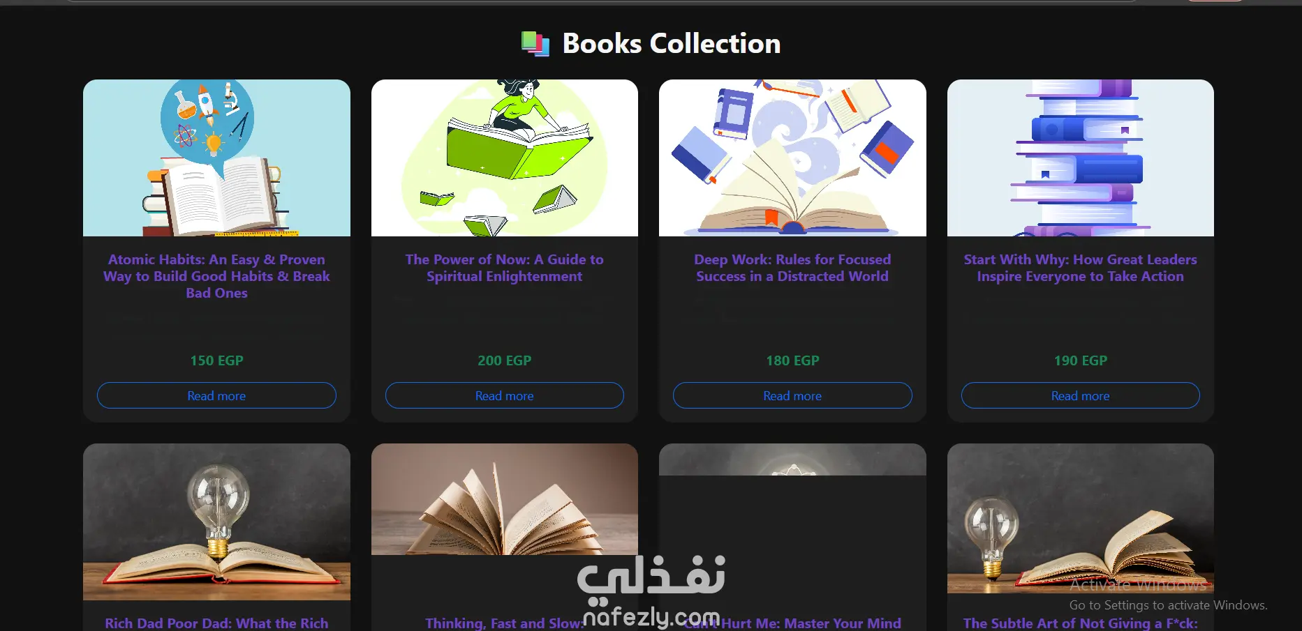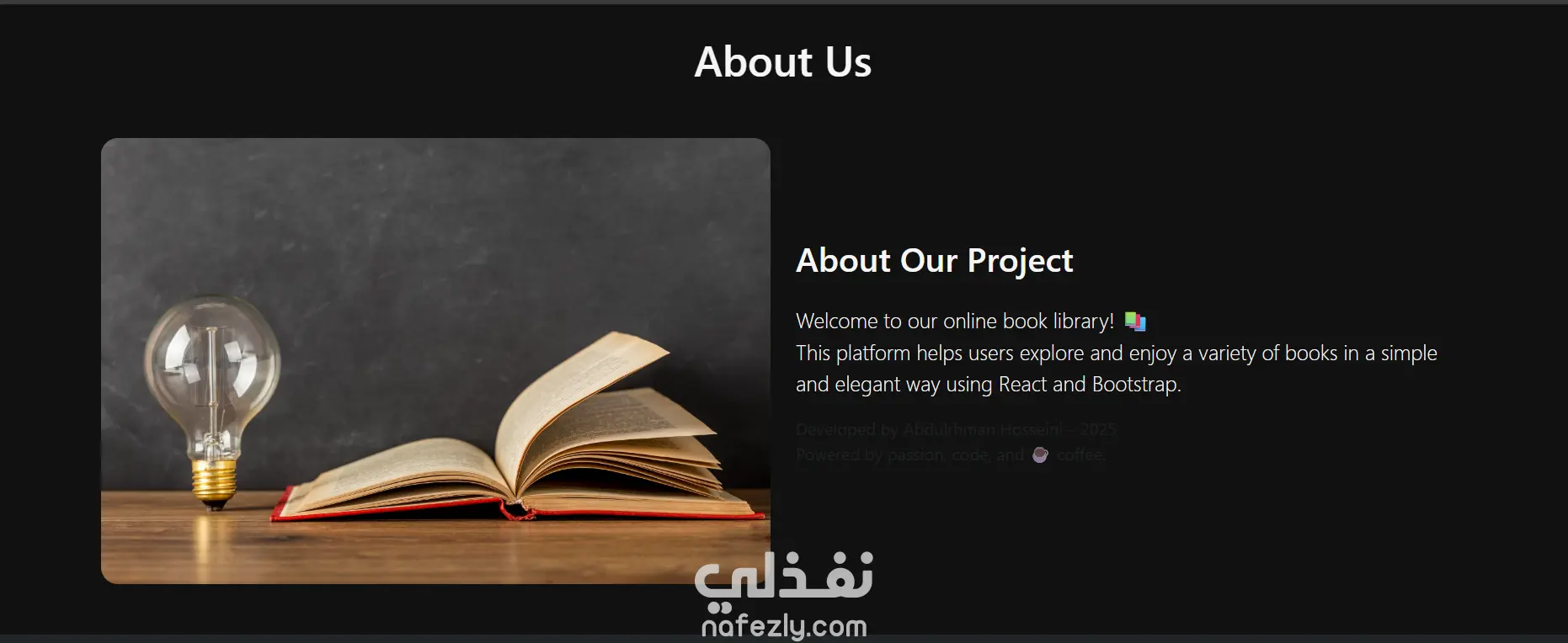 أنشأت تطبيق ويب لمكتبة إلكترونية متكاملة، يحتوي على عرض الكتب، فئات متعددة، إمكانية البحث والتصفح، تصميم واجهة مستخدم أنيق وتجربة مستخدم سلسة سواء على الحاسوب أو الجوال. استخدمت تقنيات حديثة لضمان تصميم متجاوب، تنظيم واضح للمحتوى وسهولة الاستخدام.
