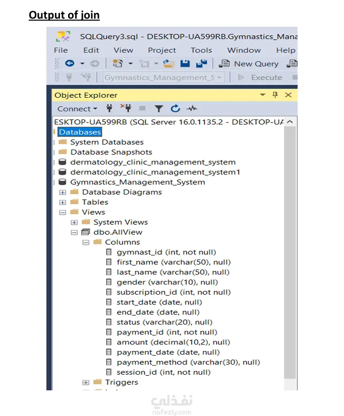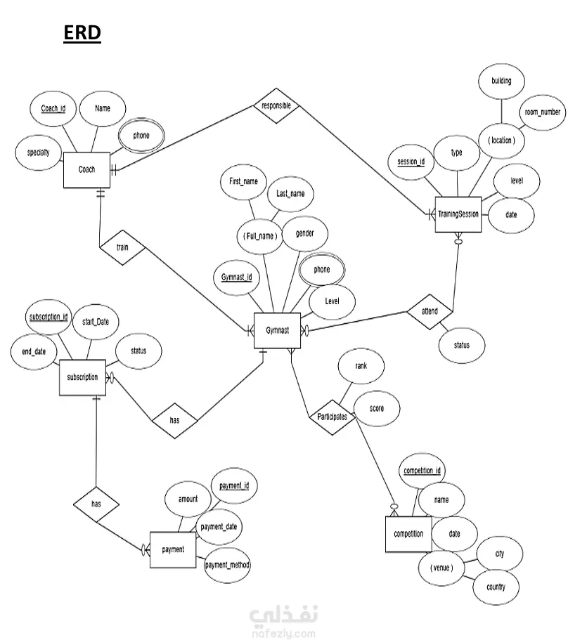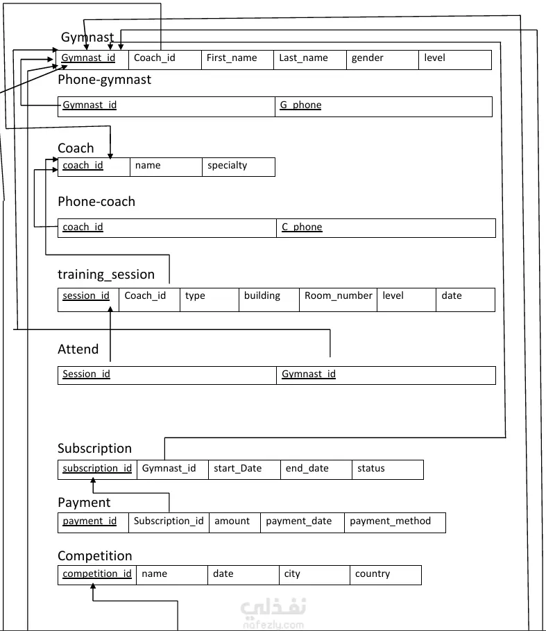 طورت نظام إدارة قاعدة بيانات متكامل لأكاديمية جمباز، بهدف تبسيط تتبع اللاعبين، المدربين، الاشتراكات، والمدفوعات بطريقة دقيقة وفعّالة. شمل المشروع تصميم ERD/EERD احترافي، إنشاء المخطط العلاقي (Relational Schema)، وكتابة استعلامات SQL ذكية للحصول على رؤى سريعة حول الحضور، العضويات، ونتائج المسابقات