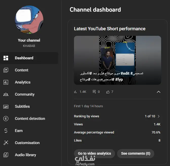 النتيجة دليل على الكفاءة: هذا العمل تحديداً (YouTube Short) حقق 1K مشاهدة في أقل من يوم ، وحافظ على نسبة مشاهدة عالية بلغت 70.6%. هذا الأداء القوي يؤكد على أن المونتاج المصمم بعناية يضمن جذب المشاهدين بسرعة وفعالية، ويدفع المحتوى للانتشار بقوة عبر خوارزميات المنصات القصيرة.