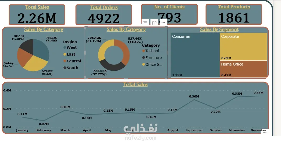 تصميم لوحة تحكم مبيعات متكاملة بتحليل ثلاثي الأبعاد (جغرافي، فئوي، زمني) باستخدام Power BI
