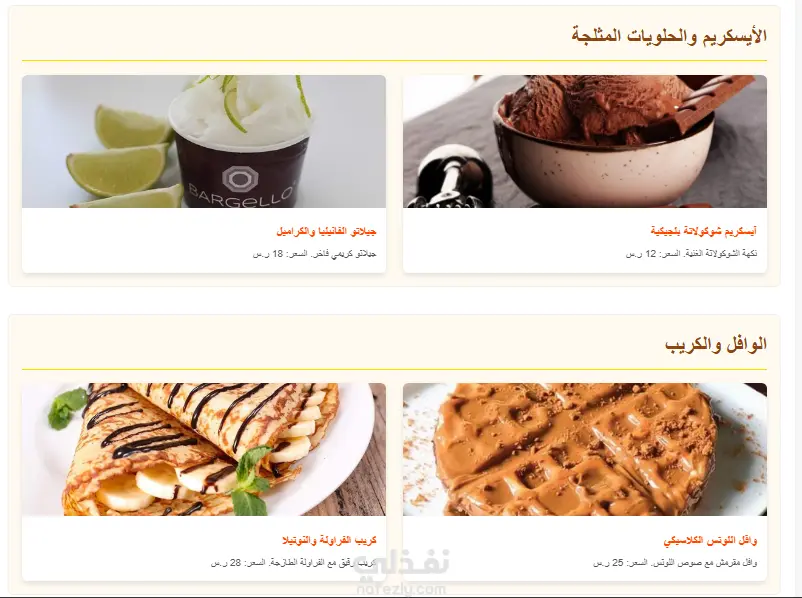 قائمة المنتجات (المنيو)